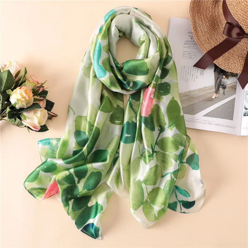 Осенняя шелковая шаль, женский модный длинный шарф из чистого шелка...