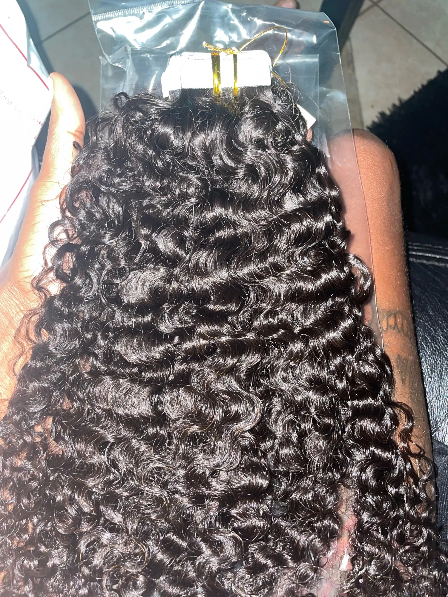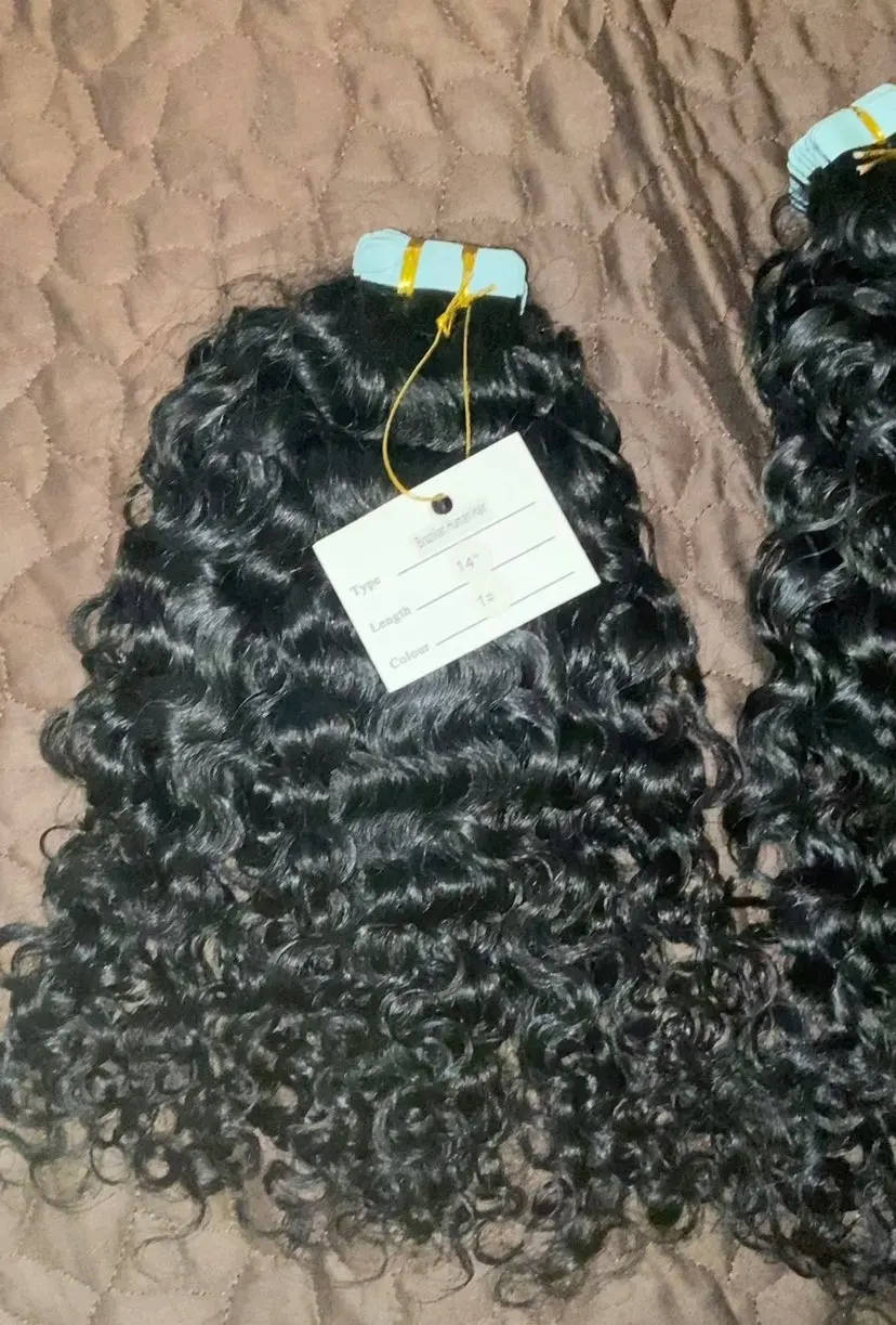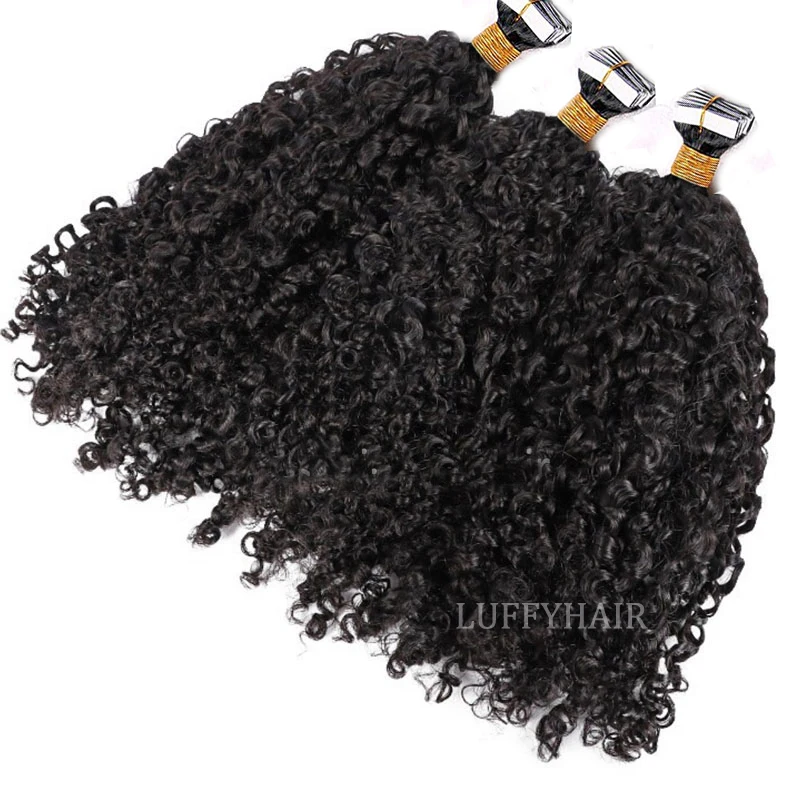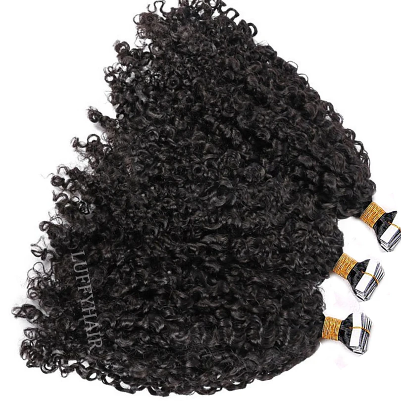 Sassy кудрявые ленты для наращивания человеческих волос Бразильская кудрявая Кожа Уток клейкая невидимая лента в волосах 40 штук