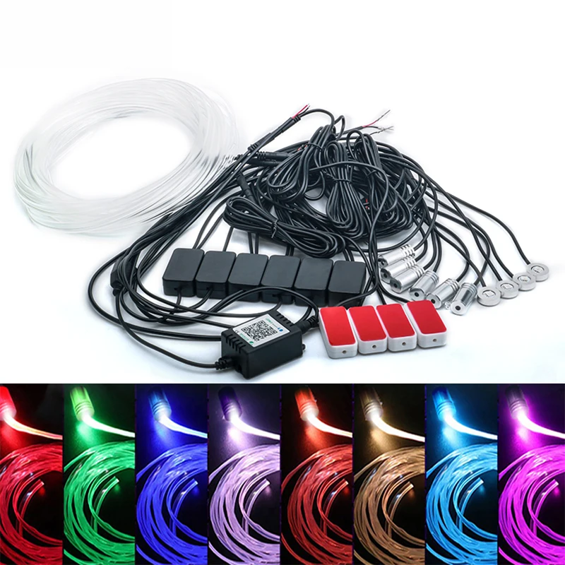 Тип изделия: 14 в 1 (оптоволоконная лента 8 м + 4 окружающего светильник s + 6 головки источника света + Главный блок управления + 6 дополнительных элементов управления + 4 дверных светильника s)