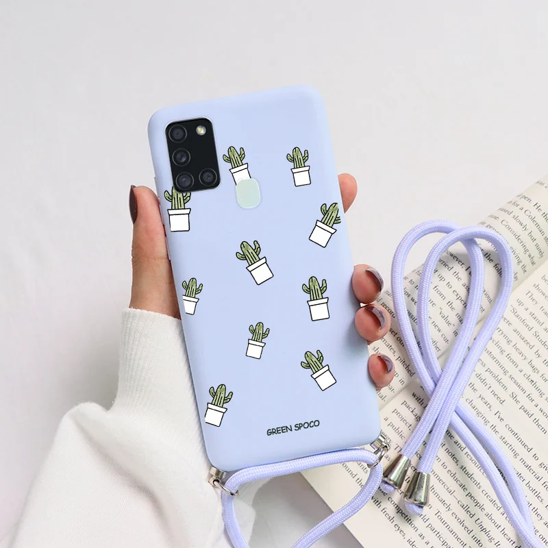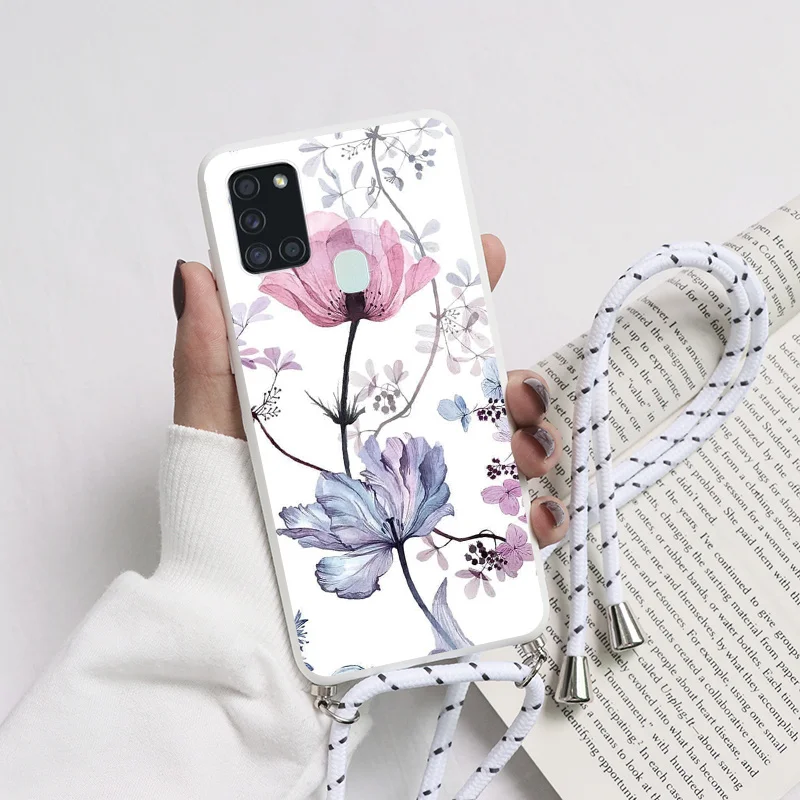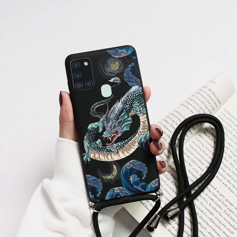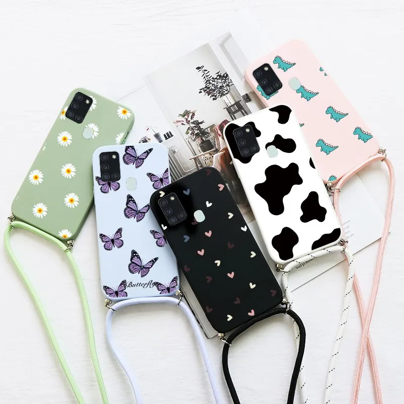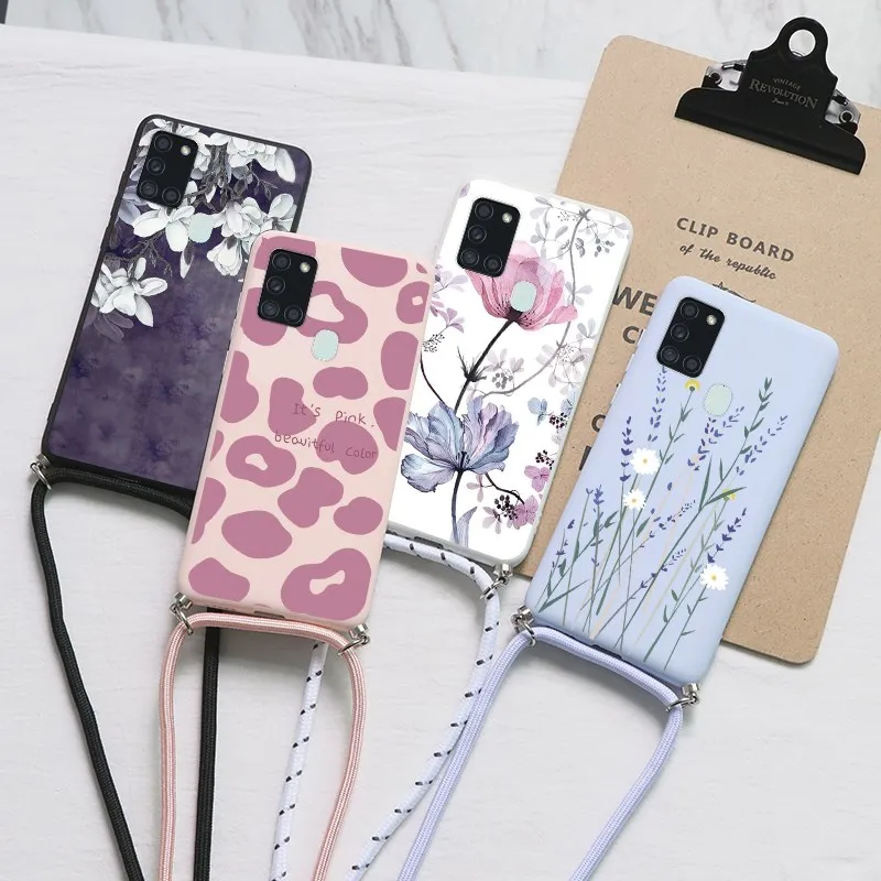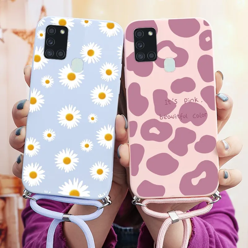 Для Samsung Galaxy A21S чехол 6,5 "TPU чехол для Samsung A21s A 21s SM-A217F a217 цепочка ремешок мягкая задняя крышка