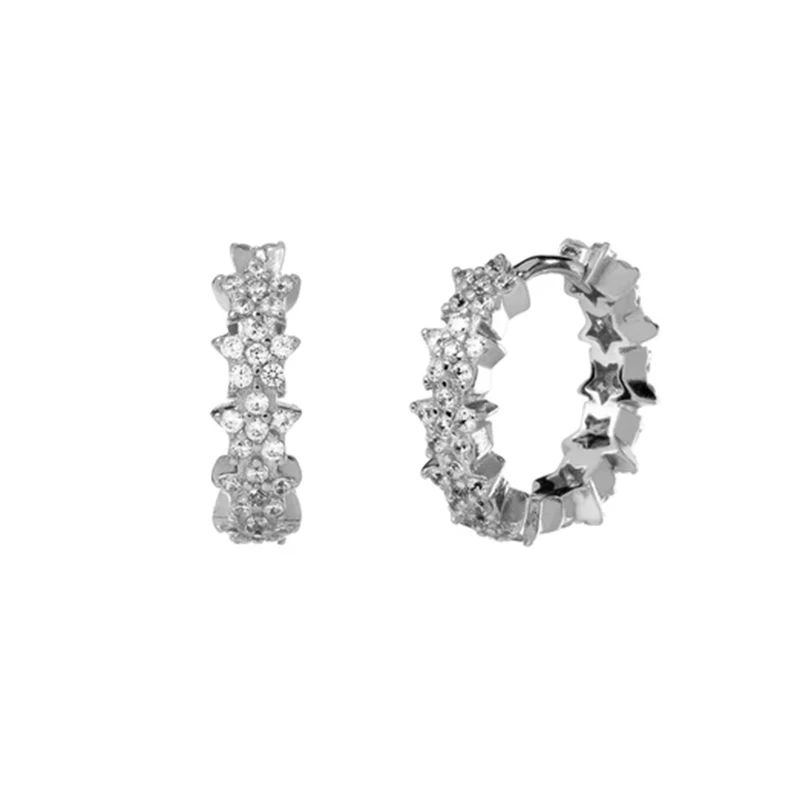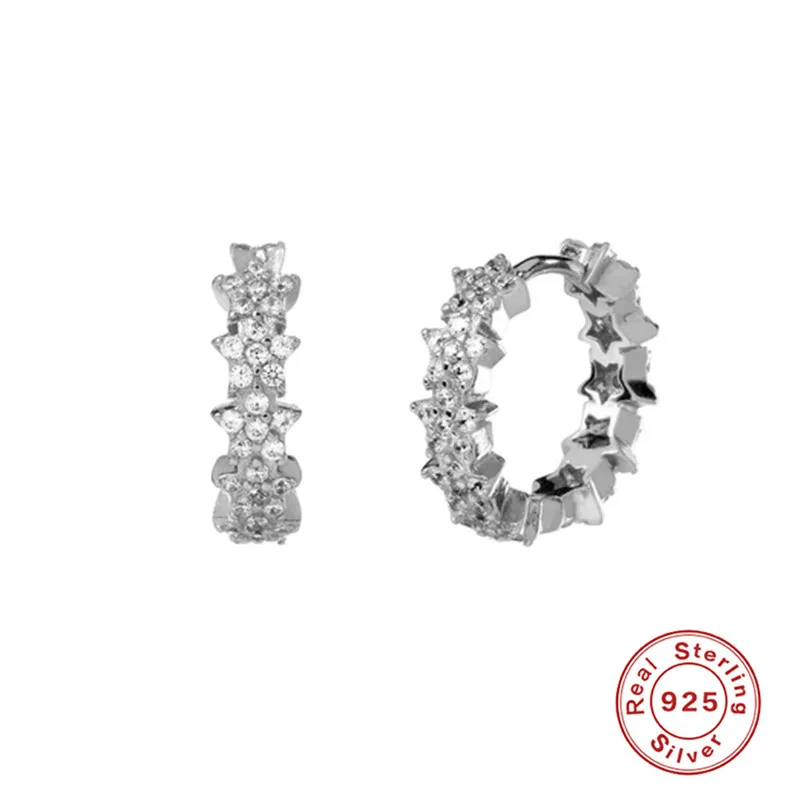 Серьги-кольца женские из серебра 925 пробы, с подвеской в виде звез...