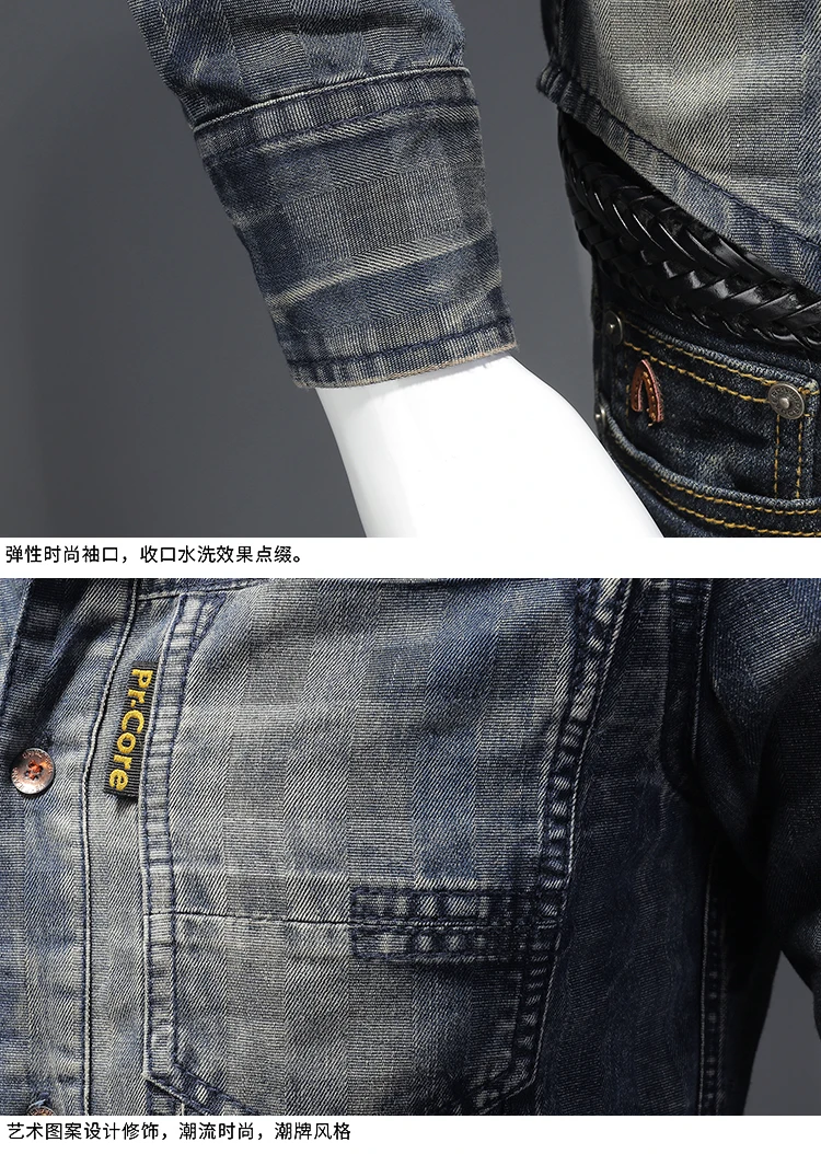 2021 ретро джинсовые рубашки мужские Джинсовые рубашки Slim с длинн...
