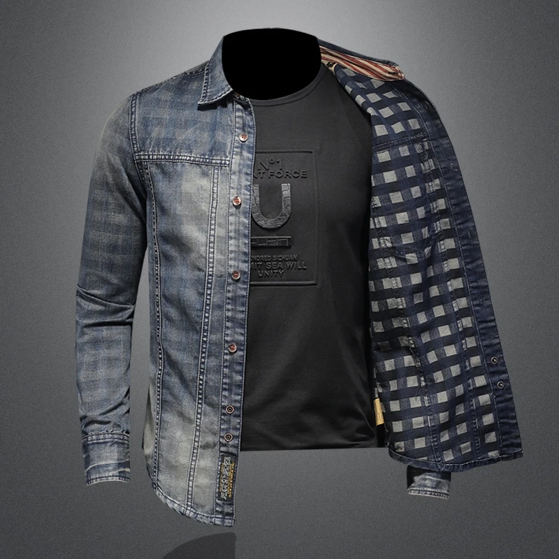 Новинка весна-осень 2021 высококачественные мужские клетчатые однобортные приталенные мужские джинсовые рубашки в стиле ретро с длинным рукавом