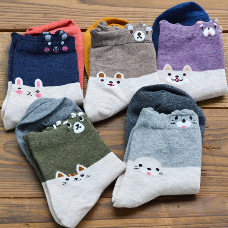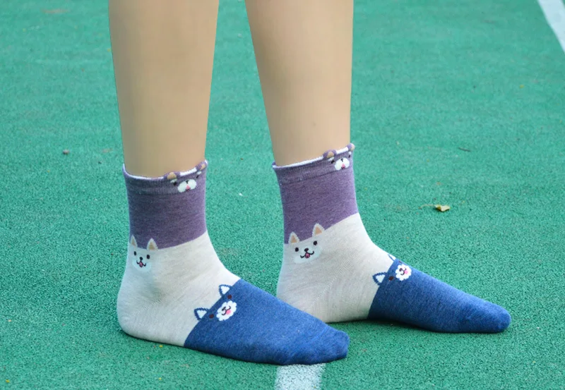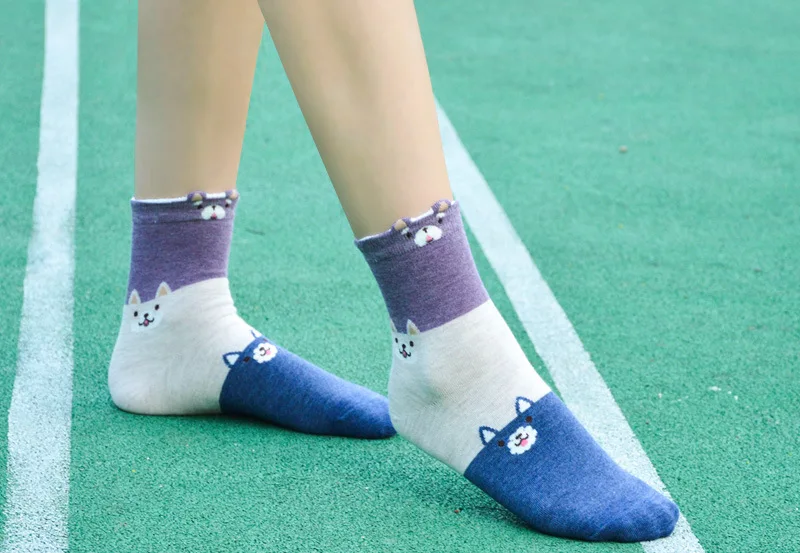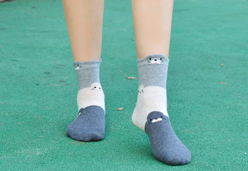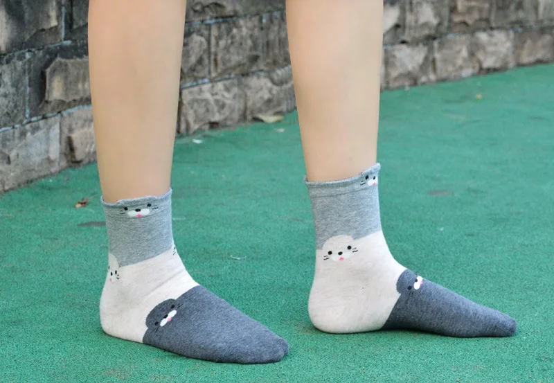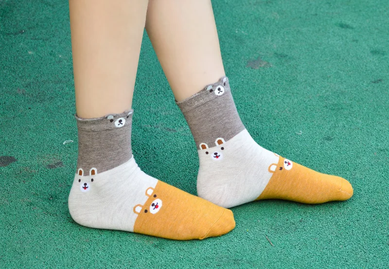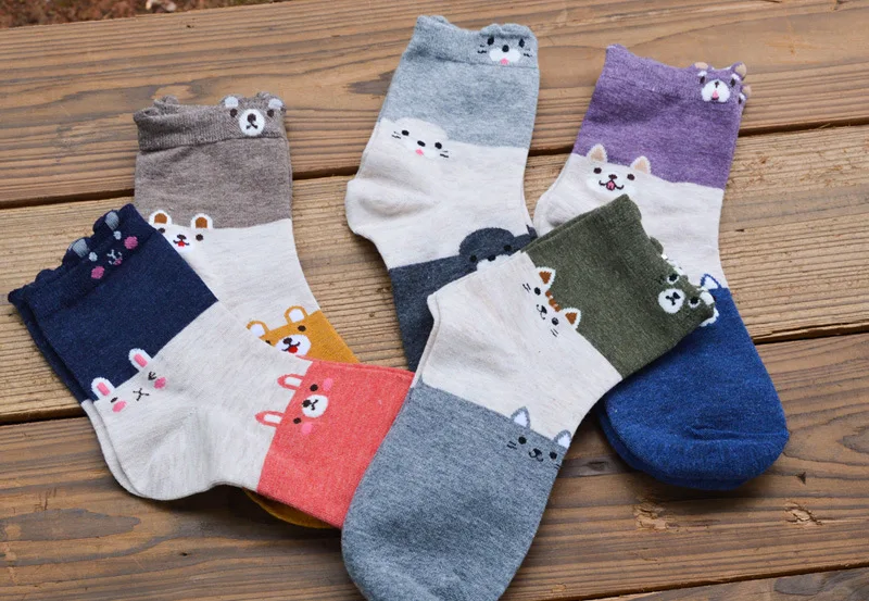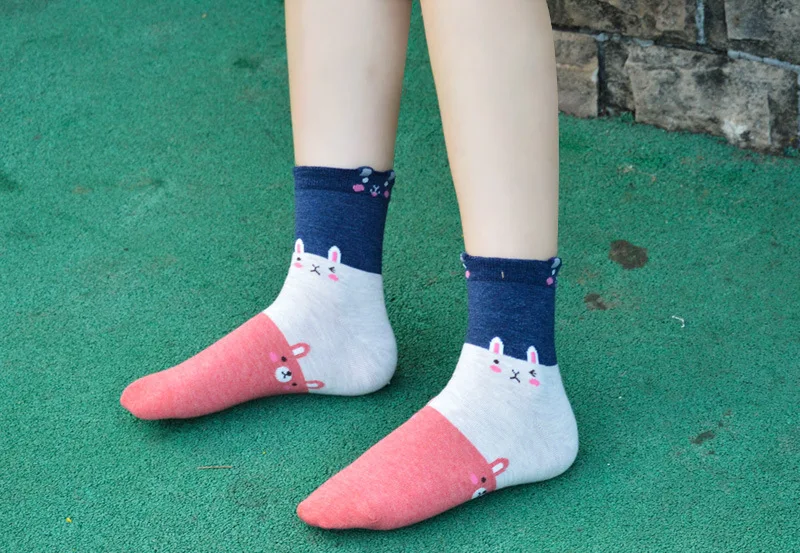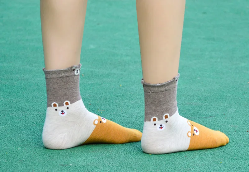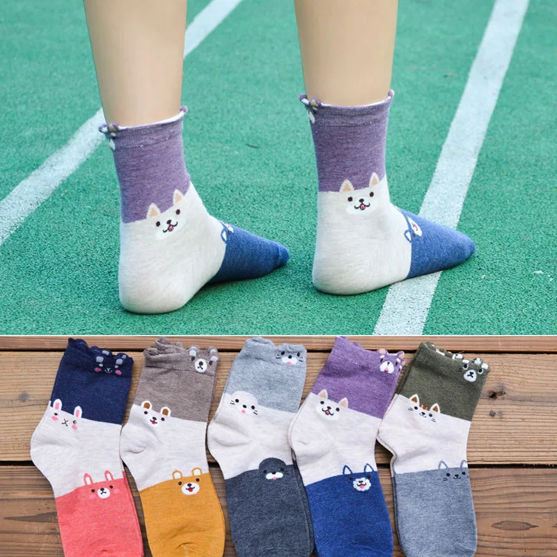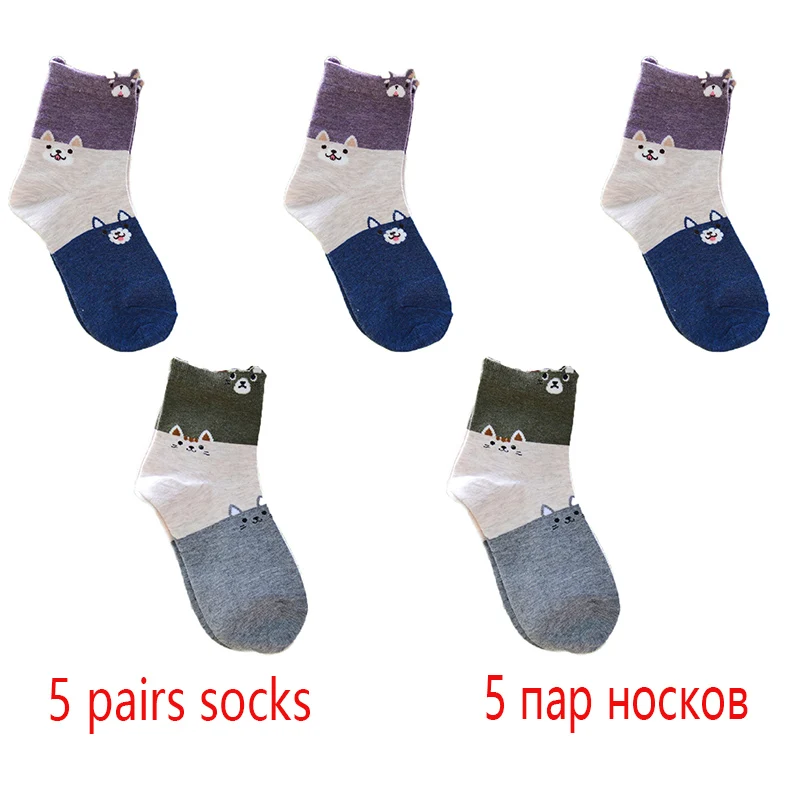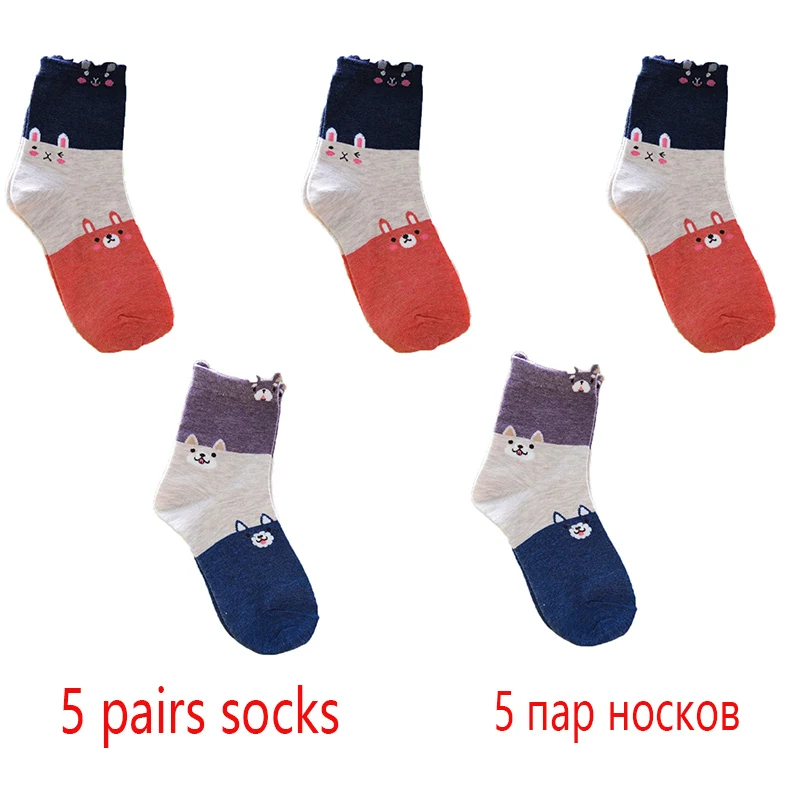 Модные Повседневные забавные мультяшные женские хлопковые носки средней длины, круглые носки, милые женские носки в стиле Харадзюку для девушек, набор женских пакетов