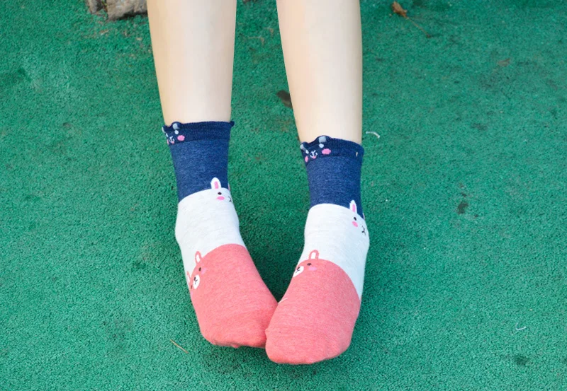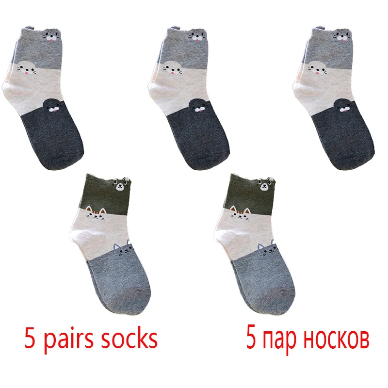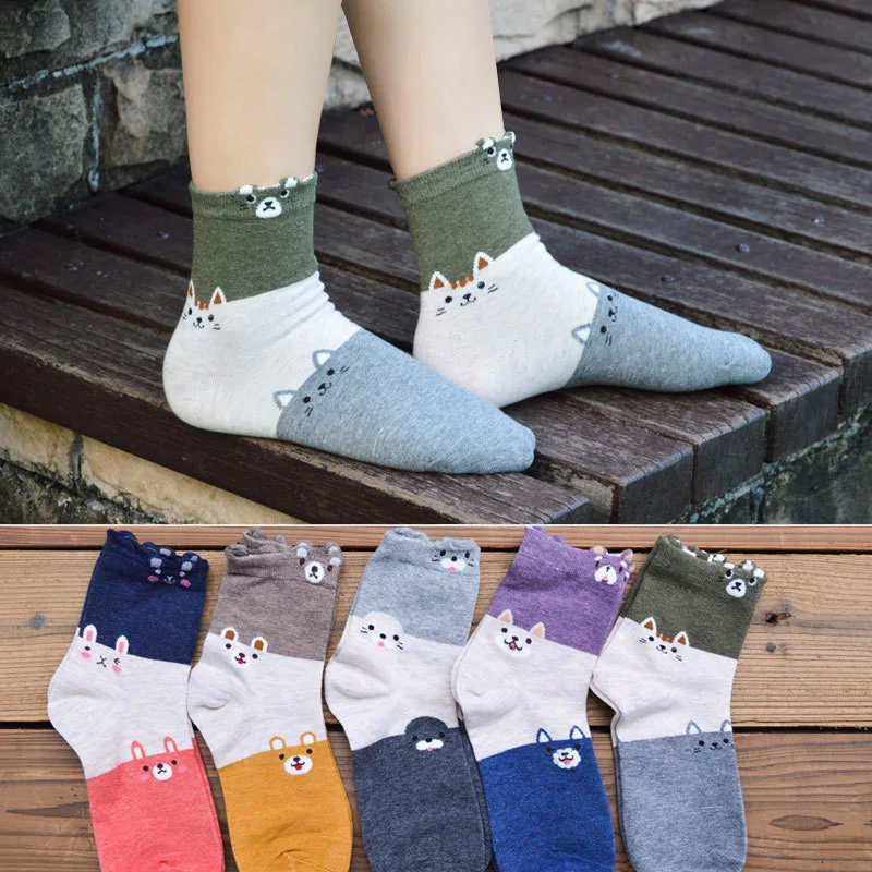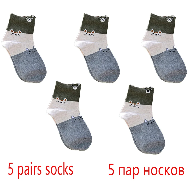 5 пар в партии, Забавный цветок для женщин из хлопка с круглым выре...