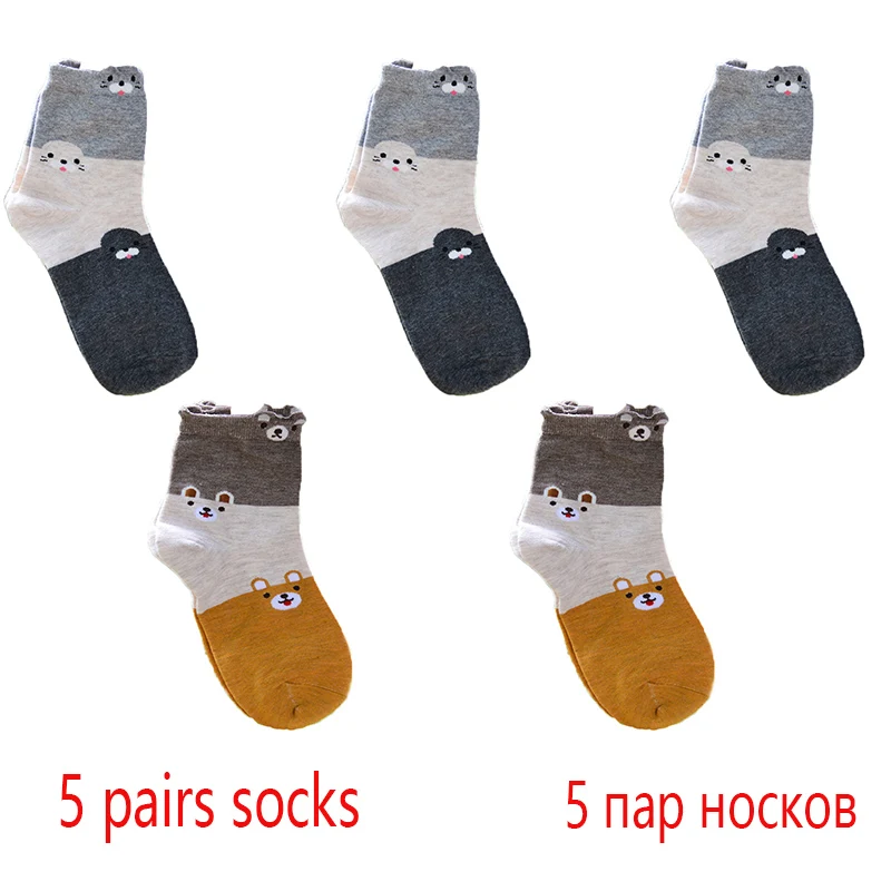 5 пар в партии, Забавный; С цветочным принтом; Хлопковые женские не...