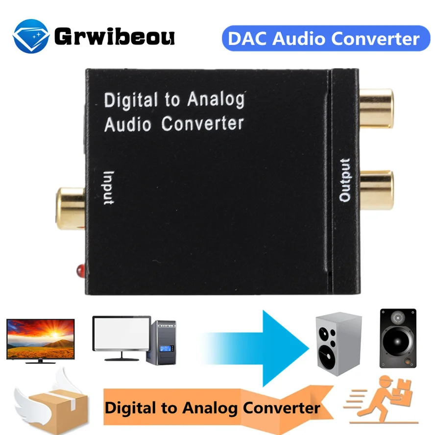 Цифровой аналоговый преобразователь Grwibeou, RCA RL выход, оптический цифровой стерео аудио, SPDIF, коаксиальный аналоговый, DAC USB