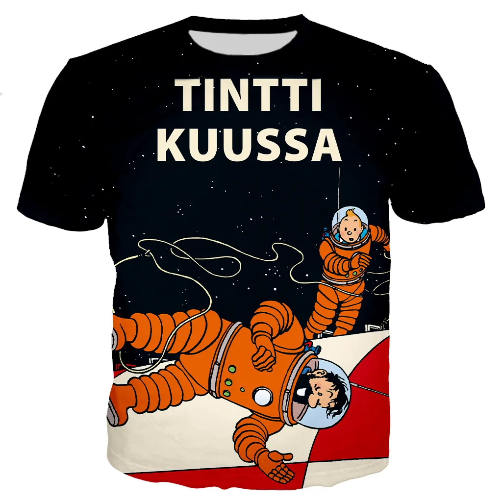 Футболка Tintin оверсайз для мужчин и женщин, Модный повседневный топ с 3D принтом для мальчиков и девочек, уличная одежда в стиле Харадзюку, Прямая поставка