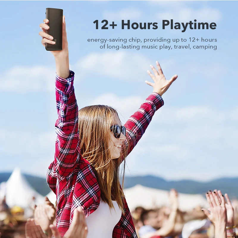 IPX5 Водонепроницаемый, IPX4 пыленепроницаемый, 12 + часов воспроизведения. Пылезащитная и водостойкая конструкция (IPX5), не боясь брызг и дождя, без навязчивого ветра и песка, легко справляется с дождем и песком в наружной среде. Дождливый день или море, или пустыня, в любое время просто наслаждайтесь музыкой. Не полностью погружайтесь в воду.