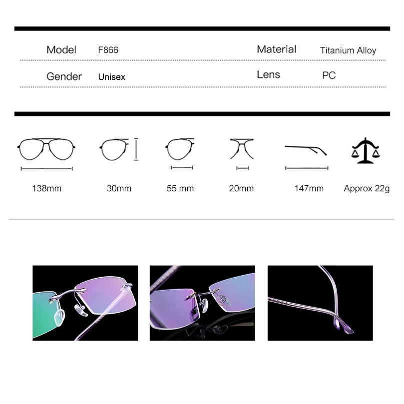 Оправа для очков без оправы F866 для мужчин и женщин, в деловом сти...