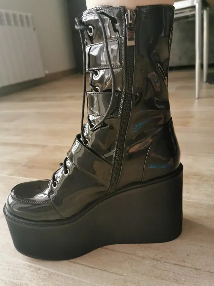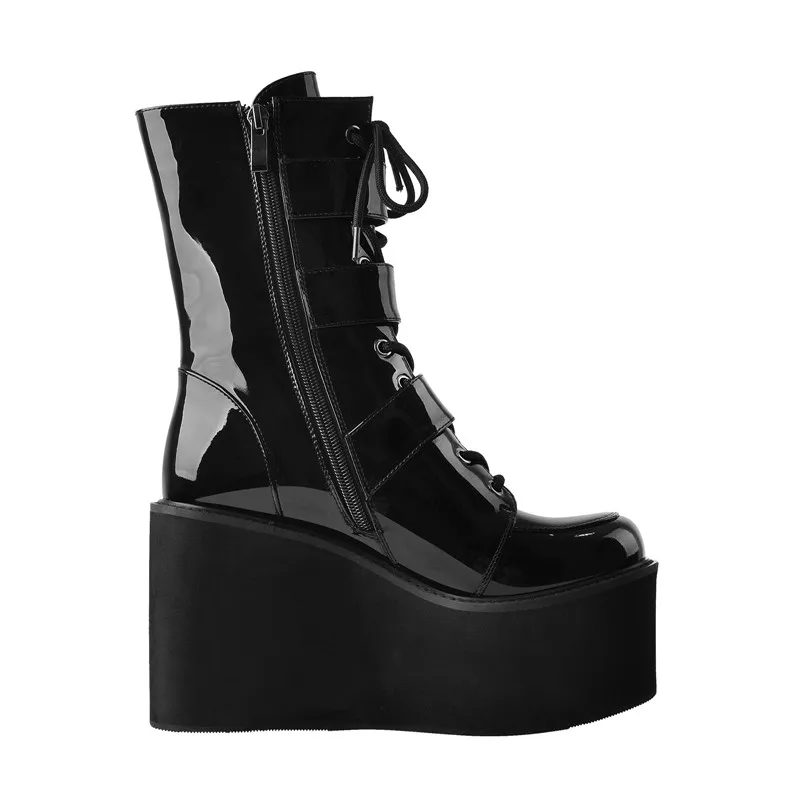 Женские ботильоны из лакированной кожи Onlymaker, черные ботильоны на платформе с круглым носком и боковой молнией, большие размеры США 5 US15