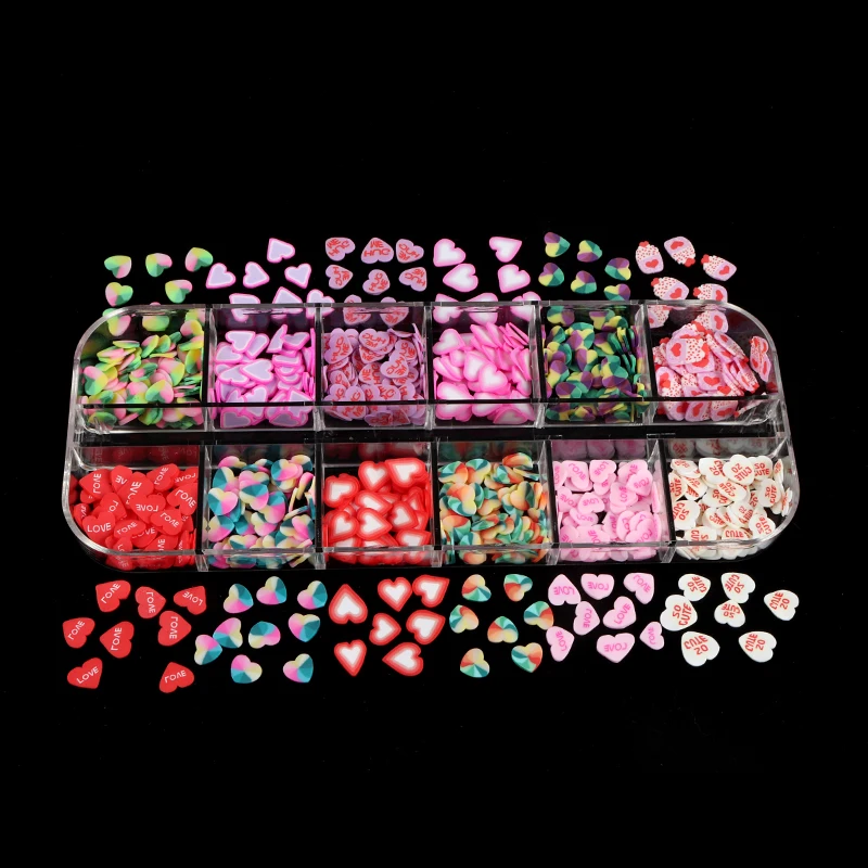 Полимерные наполнители Love Heart, украшения для дизайна ногтей на День святого Валентина, полимерные глиняные хлопья, нарезки «сделай сам», аксессуары для ногтей