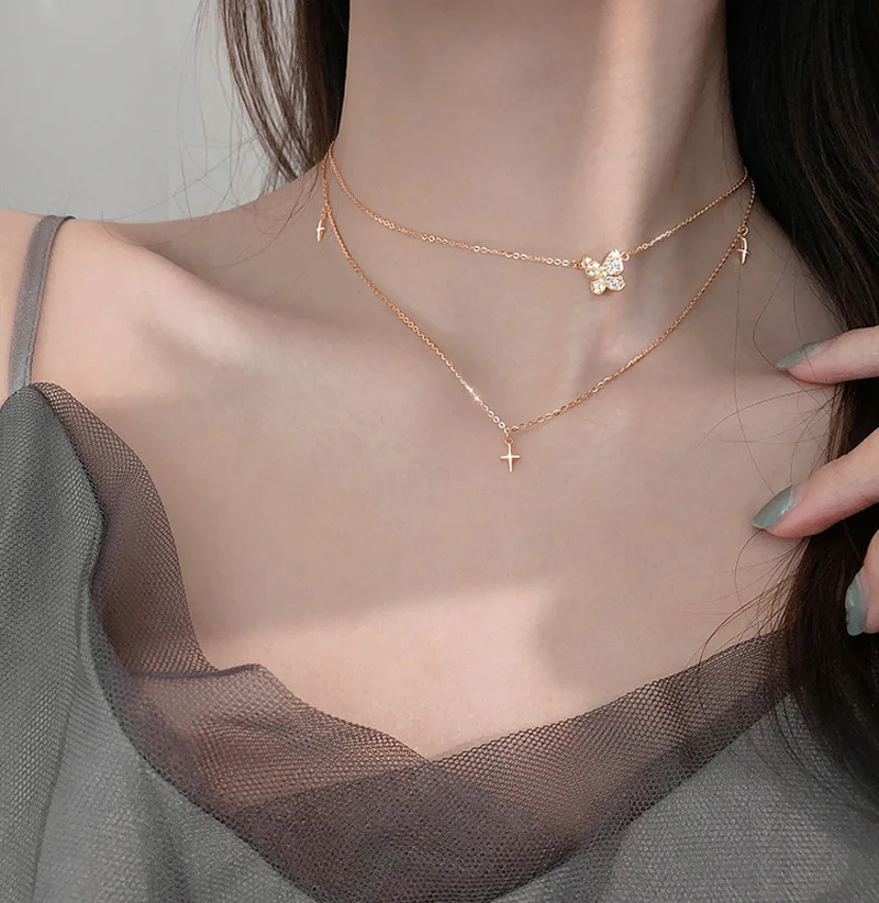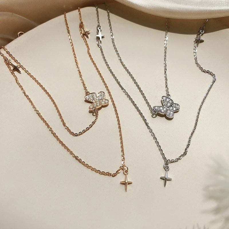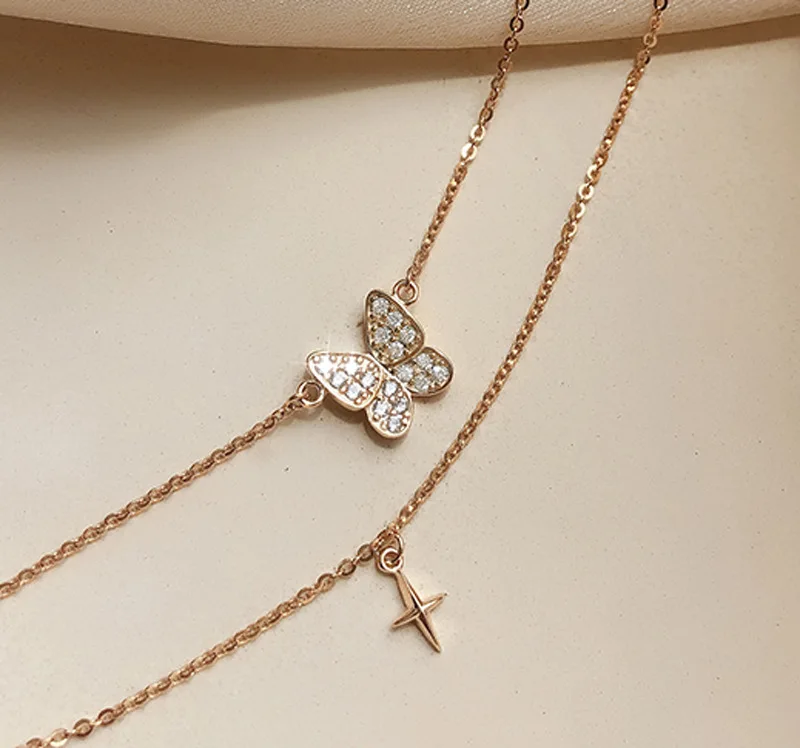 Ожерелье из стерлингового серебра 925 пробы с крестом-кисточкой на цепочке до ключиц с кристаллами двойная бабочка-чокер женское ювелирное изделие подарок для друзей
