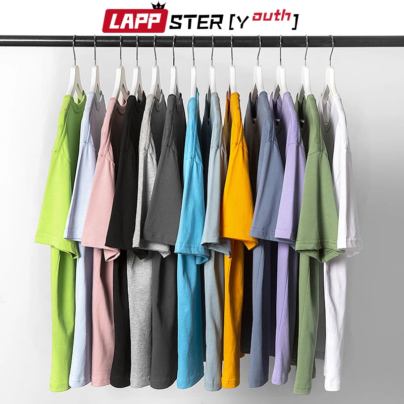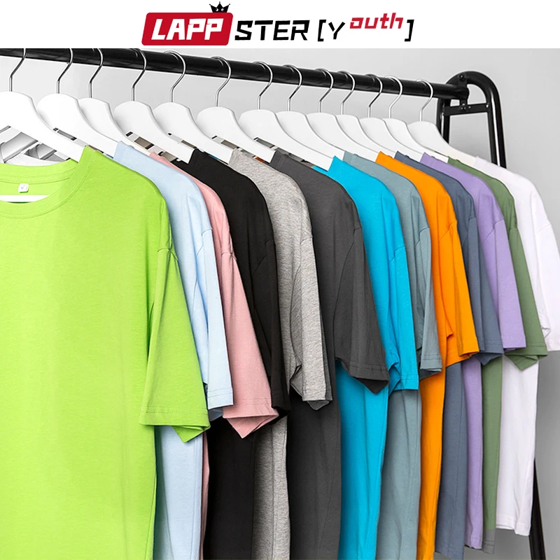 Футболка LAPPSTER мужская хлопковая в стиле Харадзюку, модная однотонная Повседневная рубашка в Корейском стиле, 13 цветов, свободная в японском стиле, лето 2021