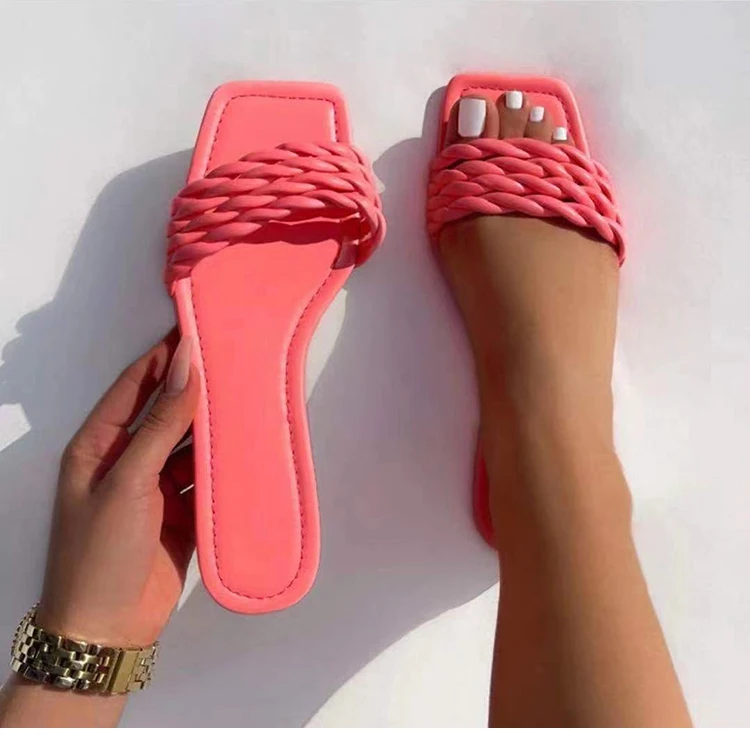 Сандалии женские на плоской подошве, однотонные пляжные тапочки без...