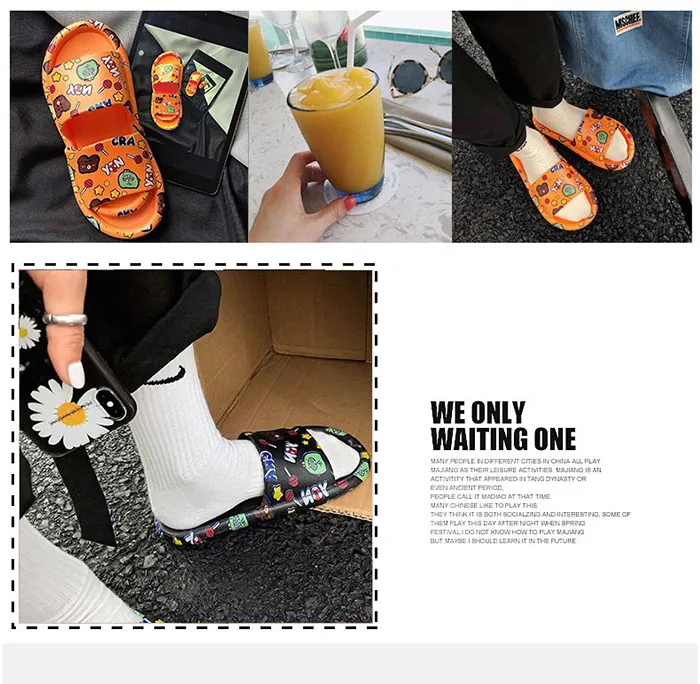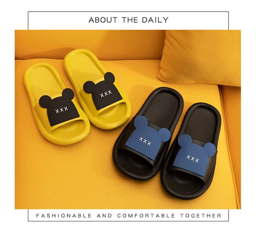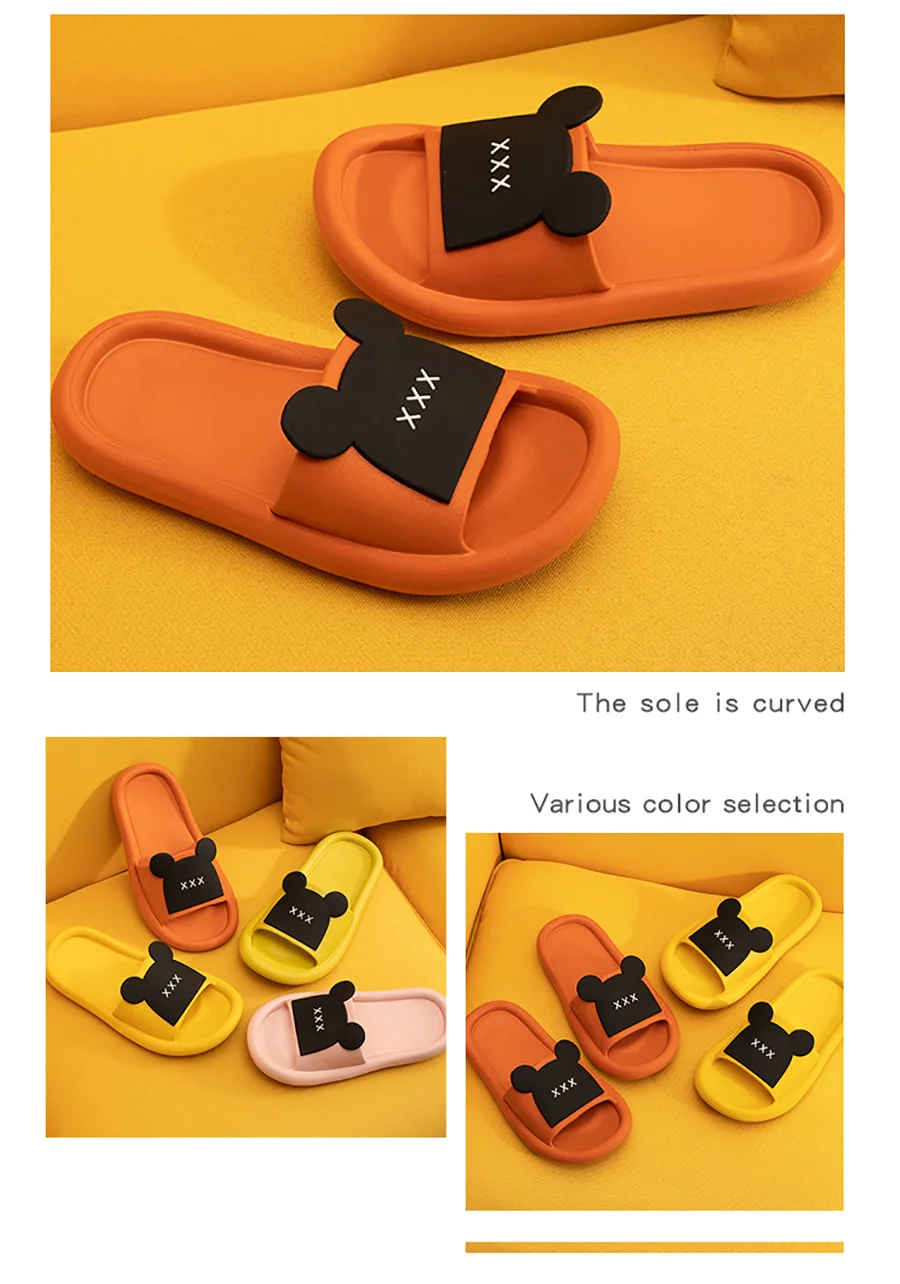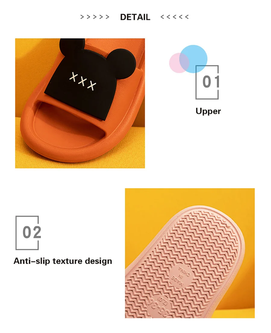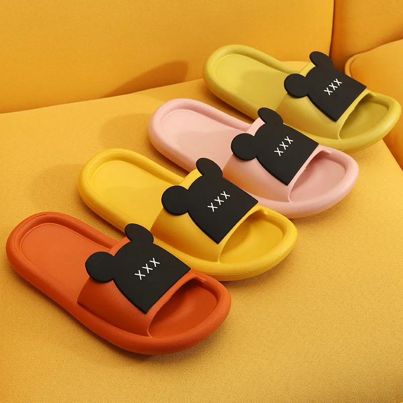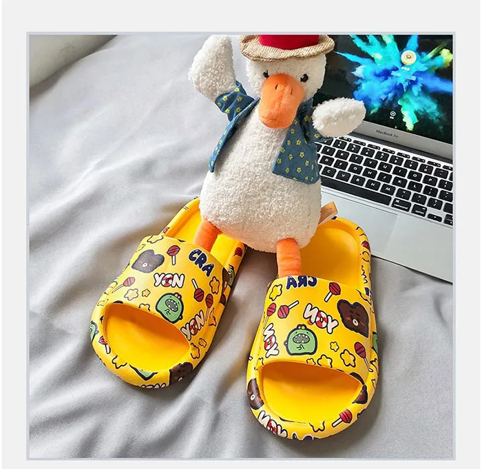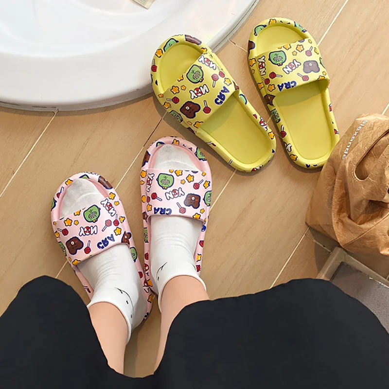 Шлепанцы для дома и ванной, Симпатичные сандалии с мультяшным рисунком, мягкая подошва, Нескользящие, сланцы для мужчин и девочек, летняя обувь для дома шлепанцы женские летние