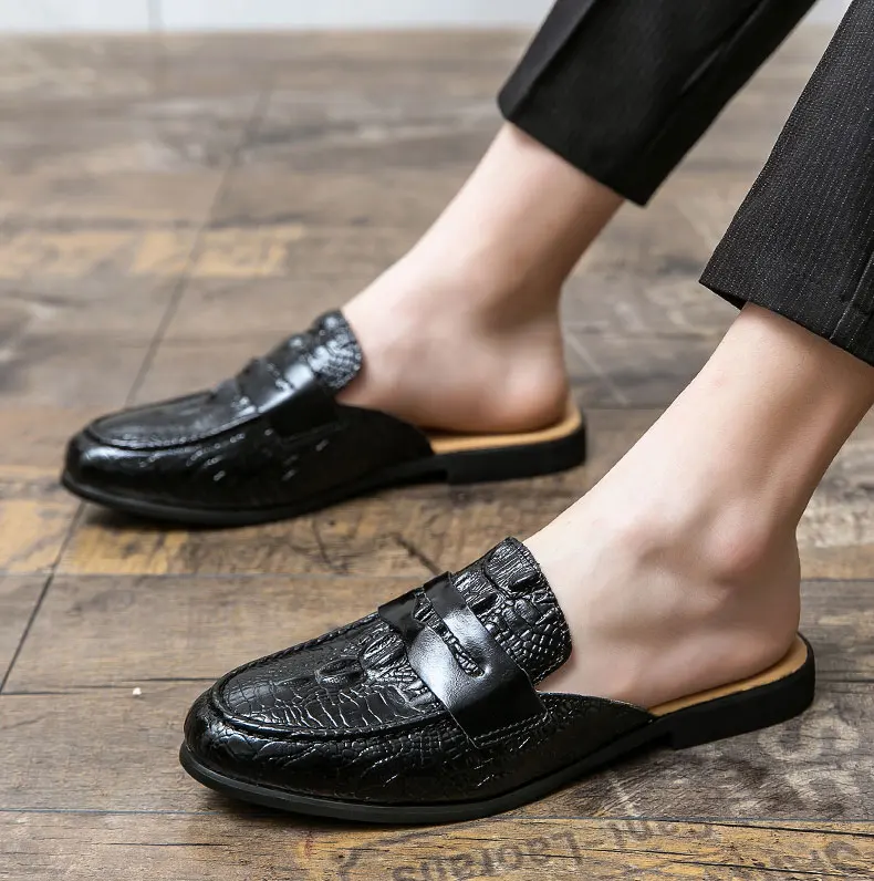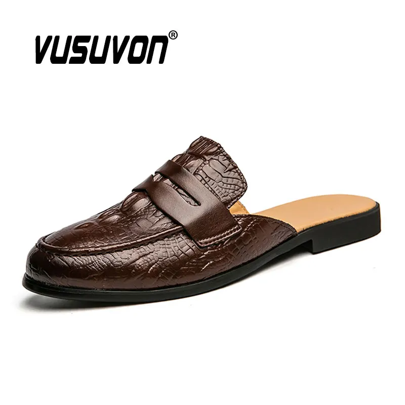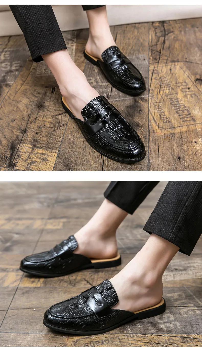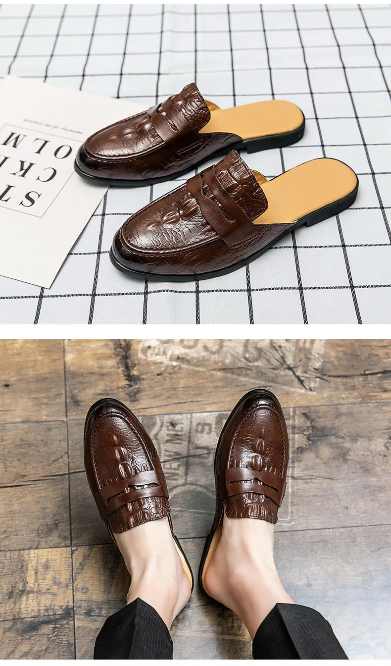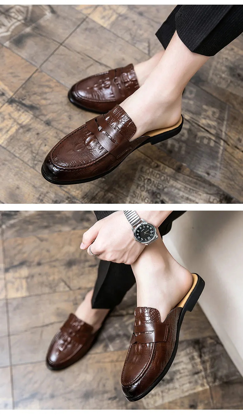 Мюли мужские кожаные, роскошные полуботинки с открытой спиной, лофе...