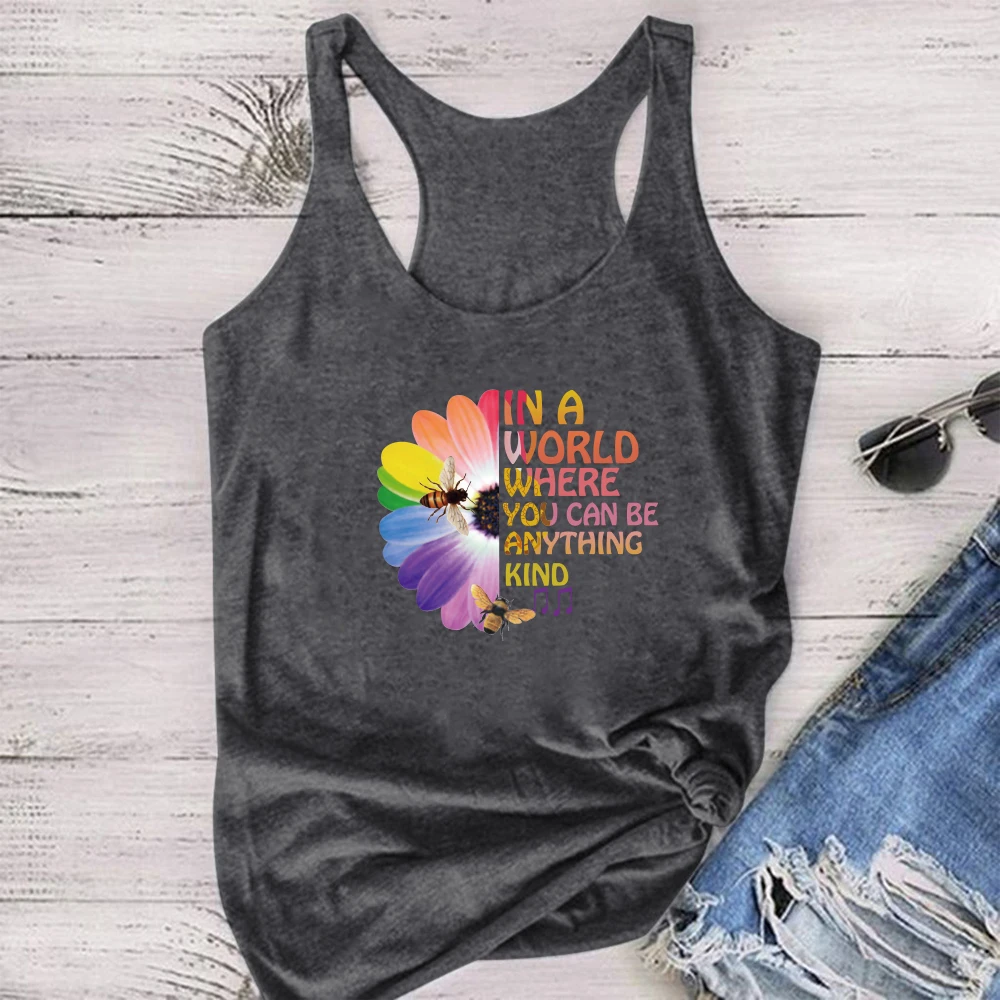 Женские майки с цветочным принтом Bee Kind, повседневные летние спо...