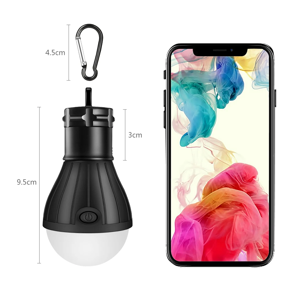 Портативный фонарь для кемпинга, Миниатюрная лампа для палаток с 3 светодиодами, аварийный светильник на аккумуляторе, водонепроницаемый фонарь для рыбалки подвесной фонарик с крюком