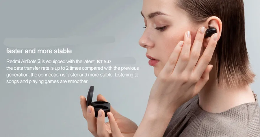 -Redmi AirDots 2 оснащен новейшим чипом BT 5,0, скорость передачи данных в 2 раза выше, чем у предыдущего поколения, соединение более быстрое и стабильное. Более плавное прослушивание песен и игра в игры.