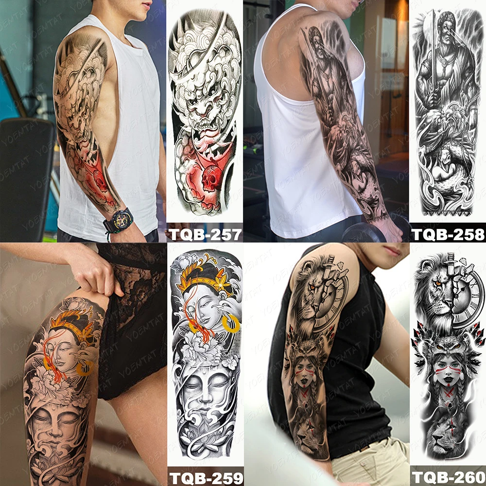 Водостойкая временная татуировка на всю руку, наклейка, Zeus Sea God, Греческая богиня, часы, временные татуировки для женщин, боди-арт, имитация рукава, тату для мужчин