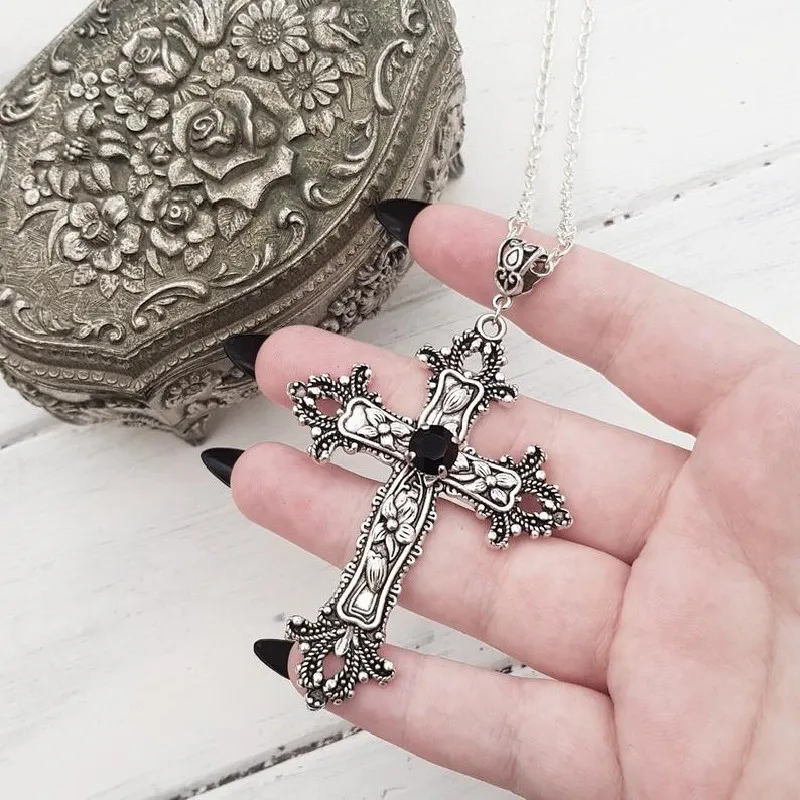 Большой подробно крест черная дрель драгоценный камень ожерелье тон творчество кулон гот ювелирные изделия для панков модные Rock массивные женские подарок