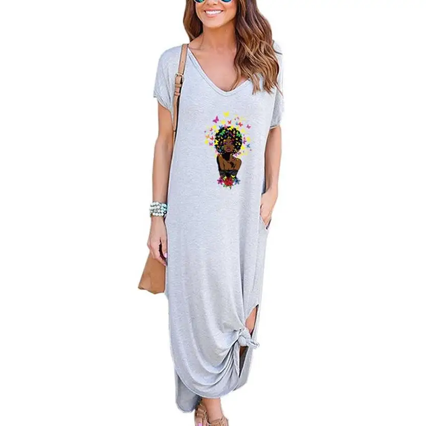 Женское летнее длинное платье, повседневное свободное платье макси ...