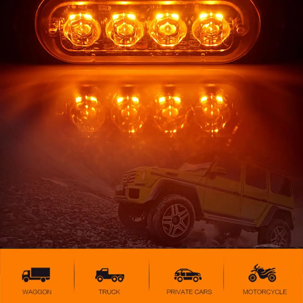 * 2. Каждая лампа имеет 4 светодиодный лампы высокой яркости, 50000 часов светодиодный срок службы, широкий угол видимости и высокая интенсивность стробоскопа, в 2 раза ярче, чем раньше! Повышает безопасность вождения, избегайте дорожных аварий.