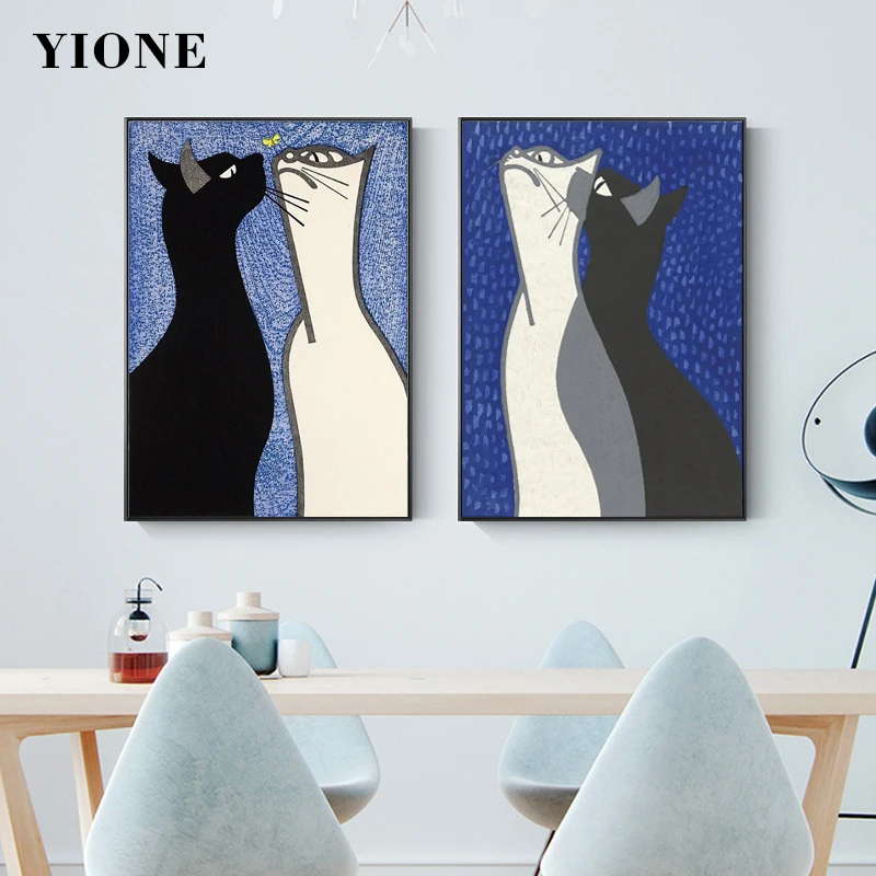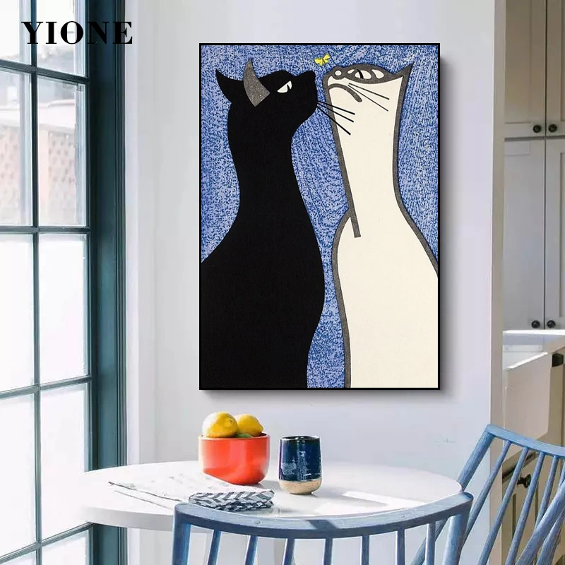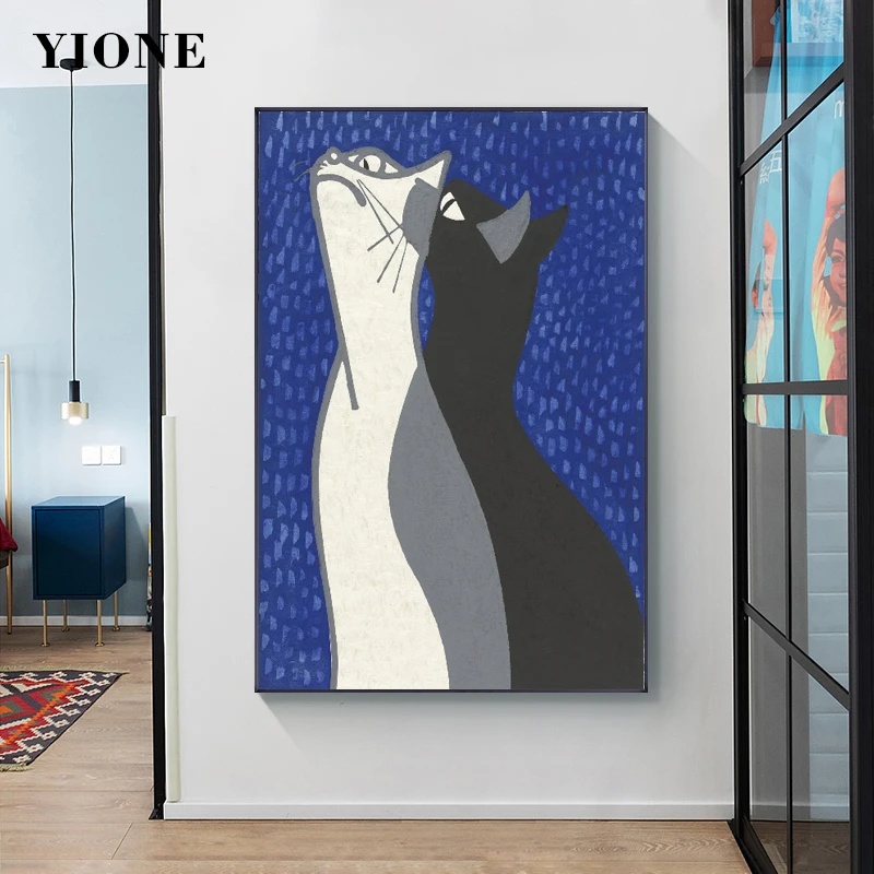 Картина на холсте с изображением двух кошек, мультяшная надменная черная белая котенка, животные, Настенная картина для детской комнаты, плакат для украшения дома