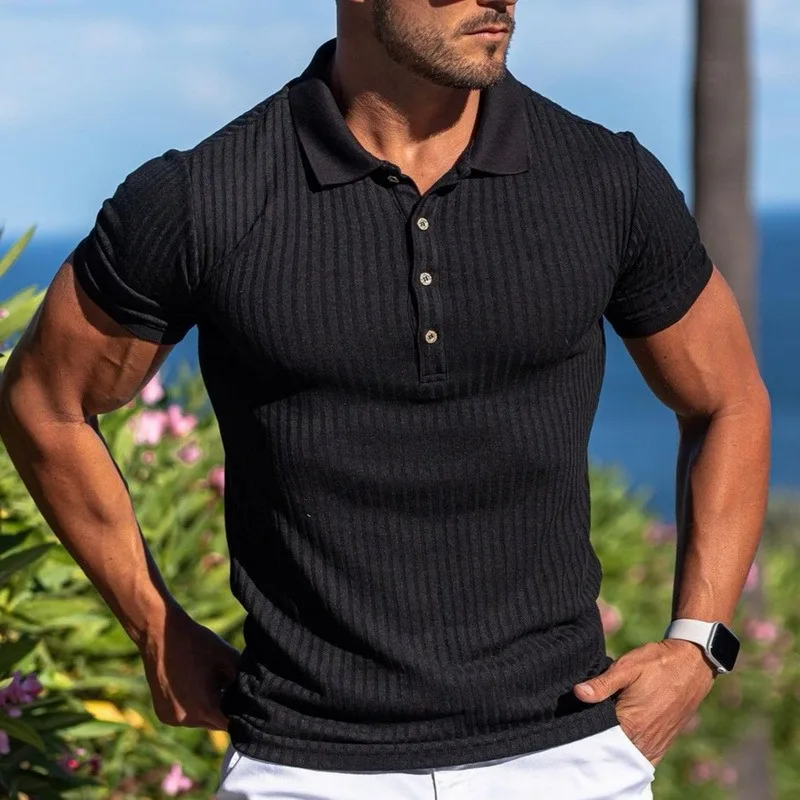Рубашка-поло мужская Трикотажная с отложным воротником и коротким рукавом