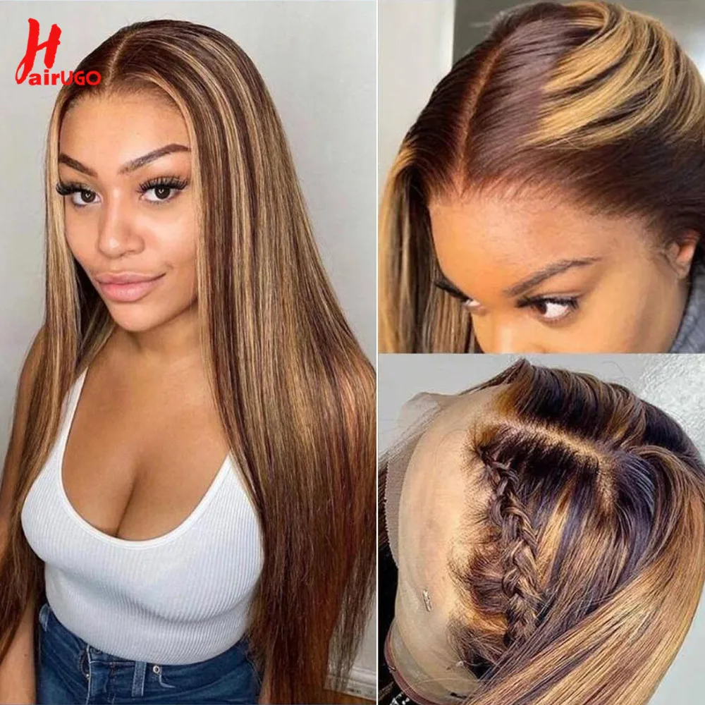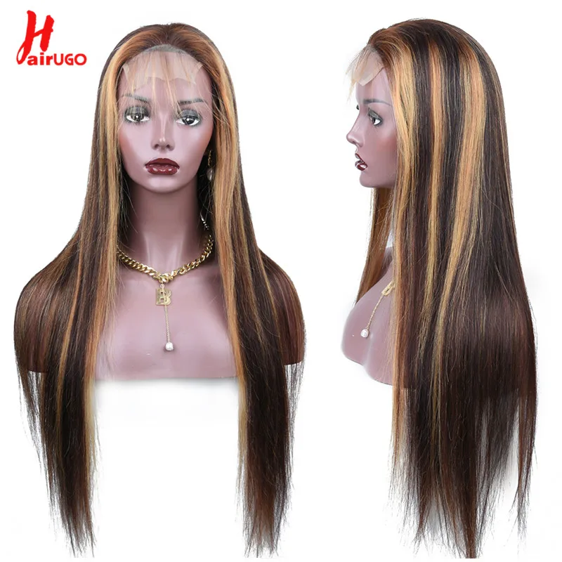 Парик HairUGo P427 из человеческих волос с прямыми кружевными волосами, 150% плотность, с детскими волосами, бразильский, 8-28 дюймов, парик без повреждений, предварительно выщипанный