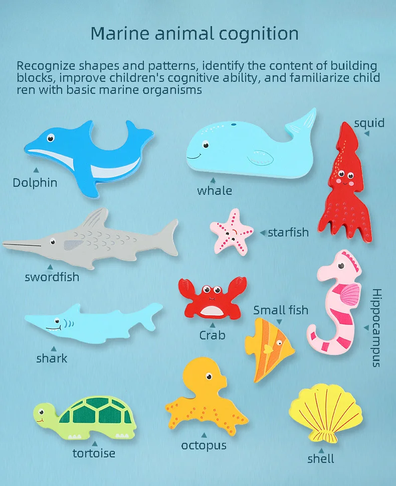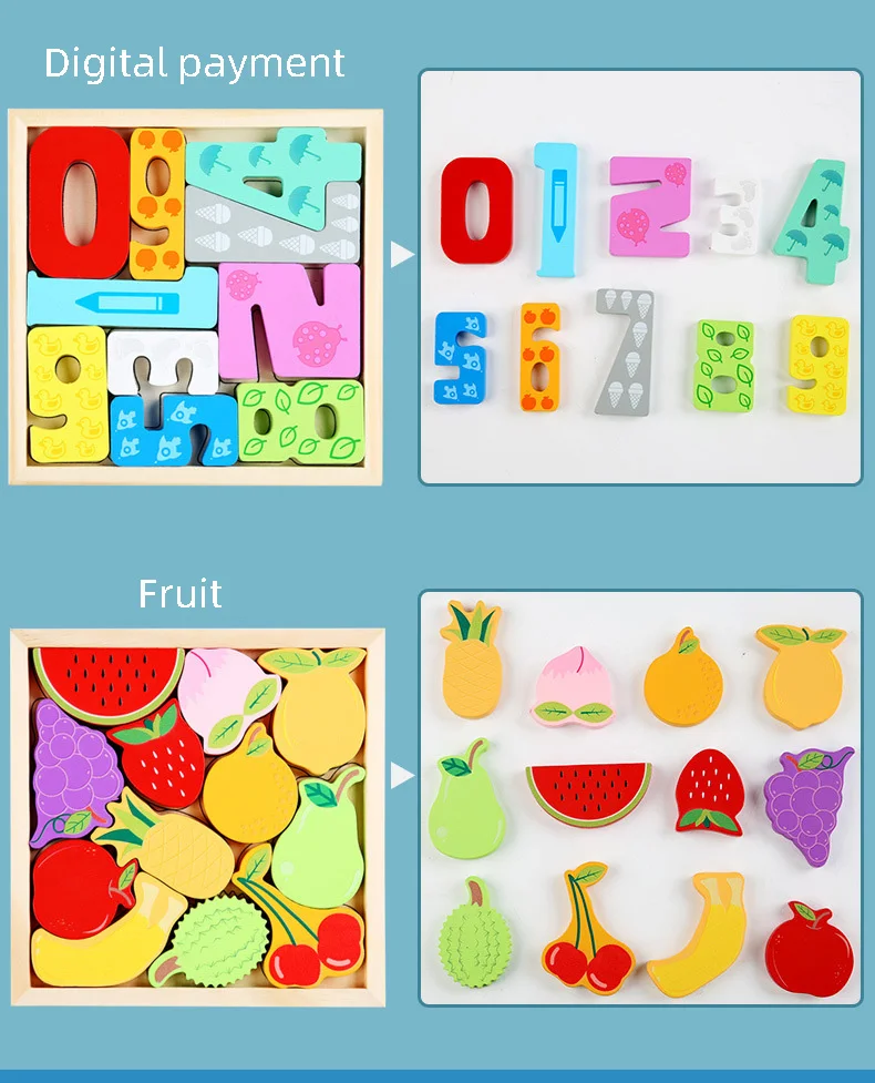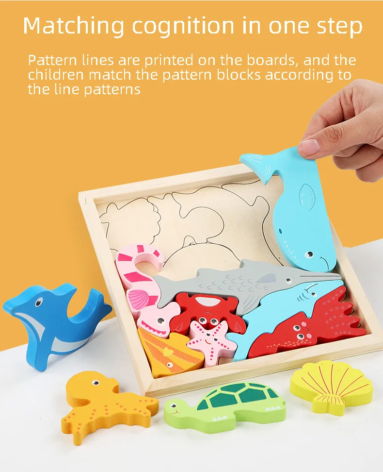 Деревянный мультяшный 3D-пазл Монтессори, когнитивные совпадения, и...