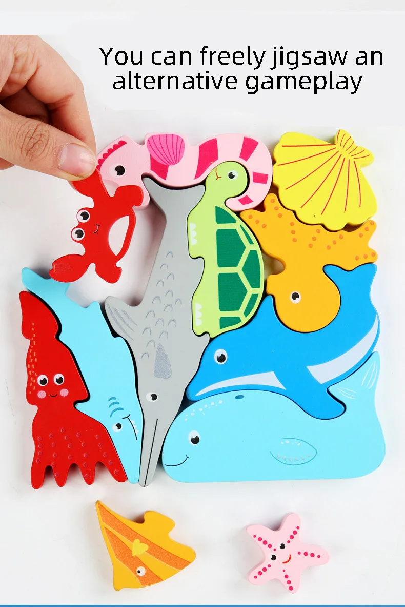 Монтессори мультфильм Животные 3D головоломка деревянные детские иг...