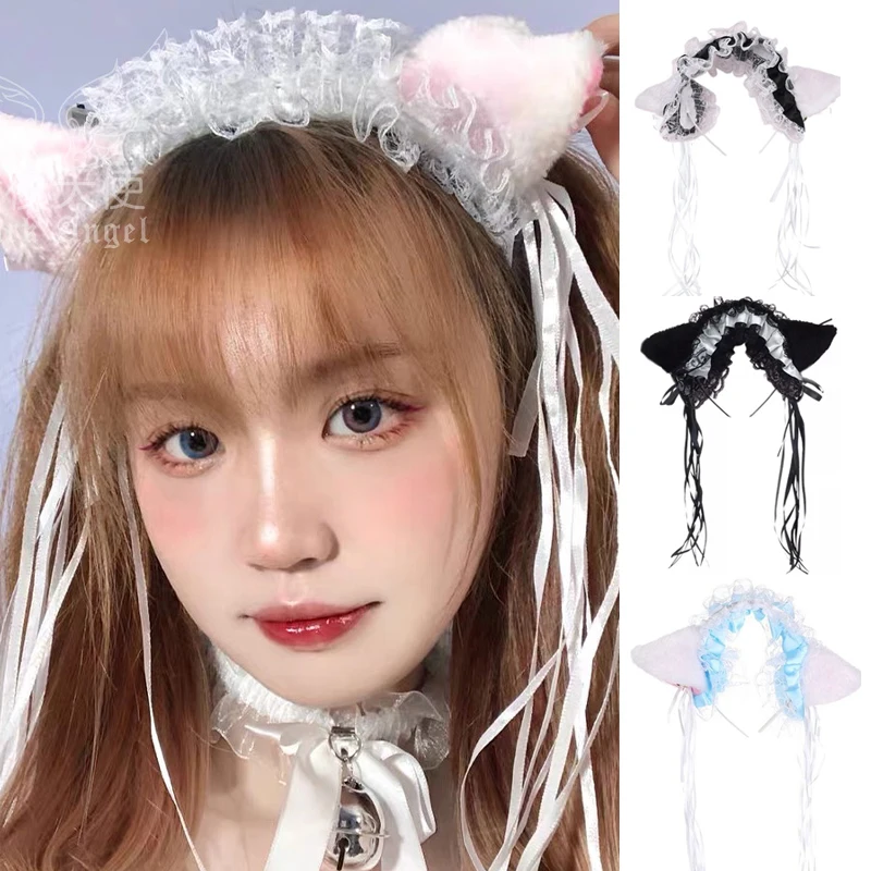 Кружевной ободок с колокольчиками и кошачьими ушками, аксессуары для волос, головной убор горничной