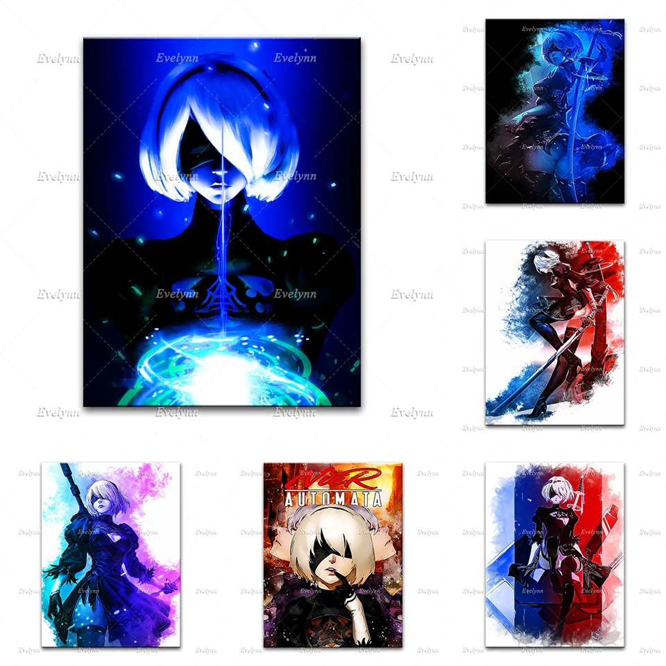 Картина с надписью NieR:Automata, Настенная картина, холст, плакат с красивой девушкой, картина, персонаж игры, Современный домашний декор, спальня