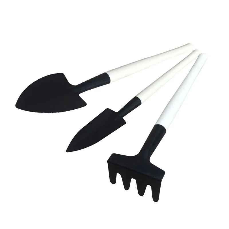 Набор мини-инструментов, лопатка и грабли с деревянной ручкой, для горшечных растений, Садовые принадлежности, маленький домашний и семейный инструмент для улицы, для детей, 3 шт.