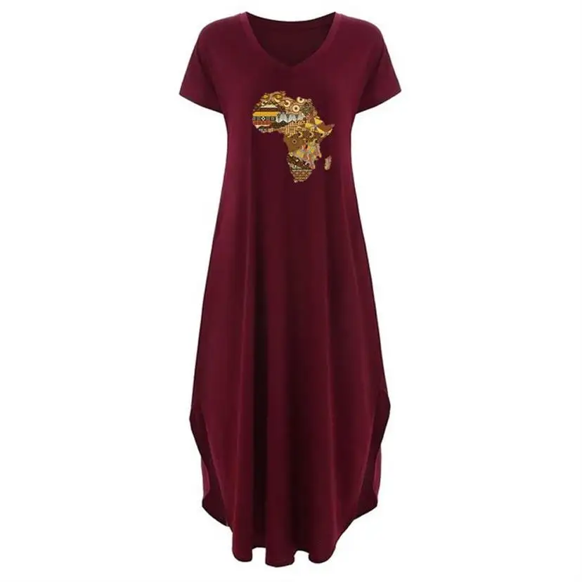 3XL5XL Сексуальное Черное женское платье с карманами в стиле карты Африки летнее 2022 Повседневное платье макси для женщин длинное платье женские платья