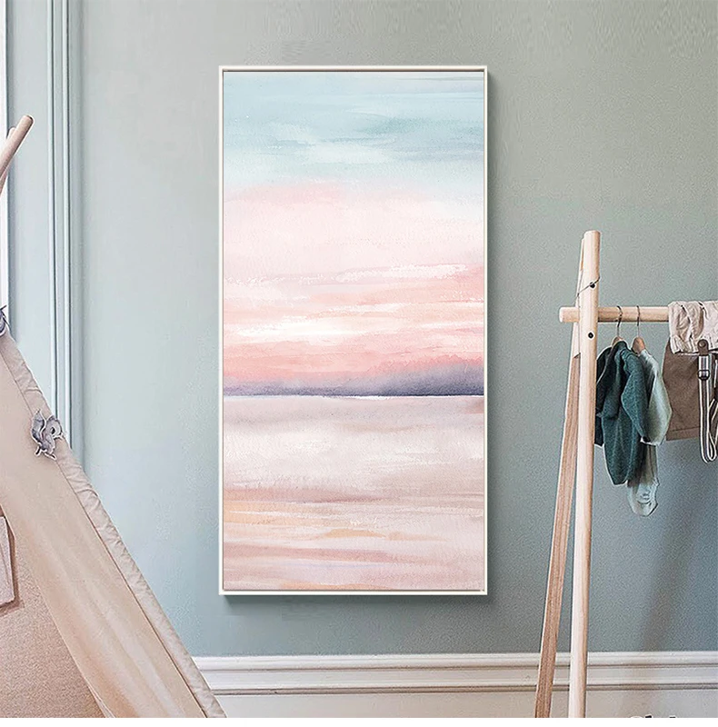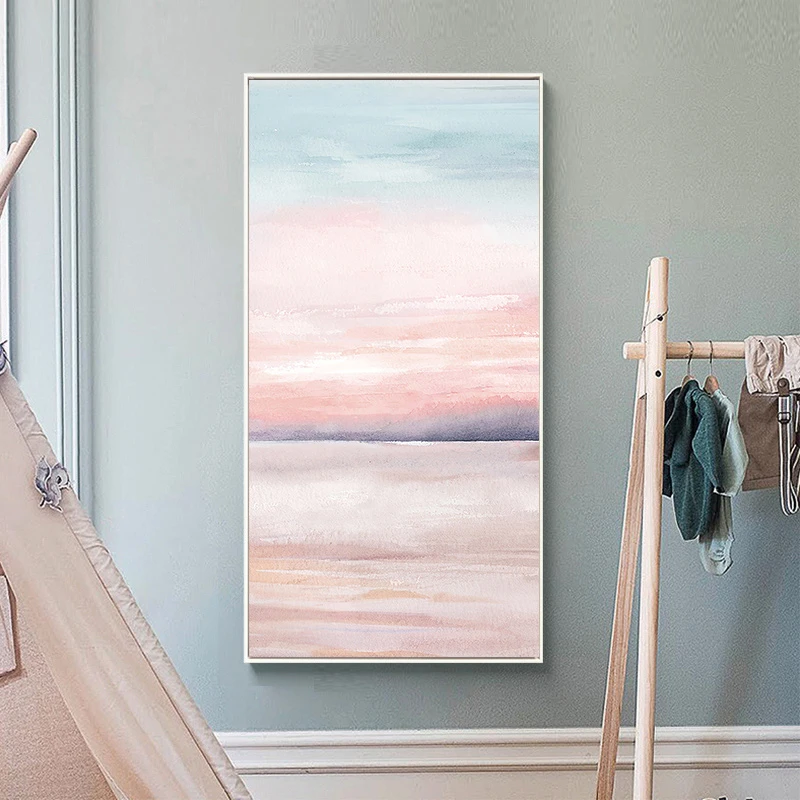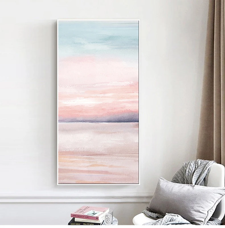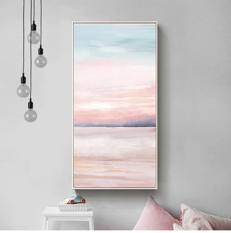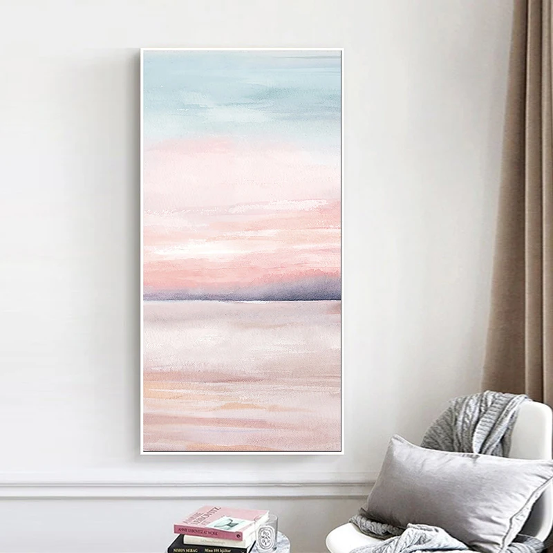 Абстрактный пейзаж, настенная живопись на холсте, розовый небесно-г...