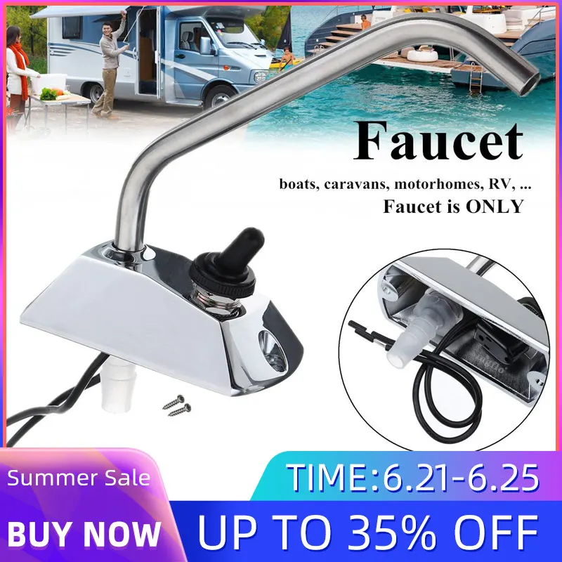 Электрический смеситель для водяного насоса, кухонный кран 12 В, рычажный переключатель для водопроводной системы RV, вращение на 360 градусов, для фургона, лодки, кемпера