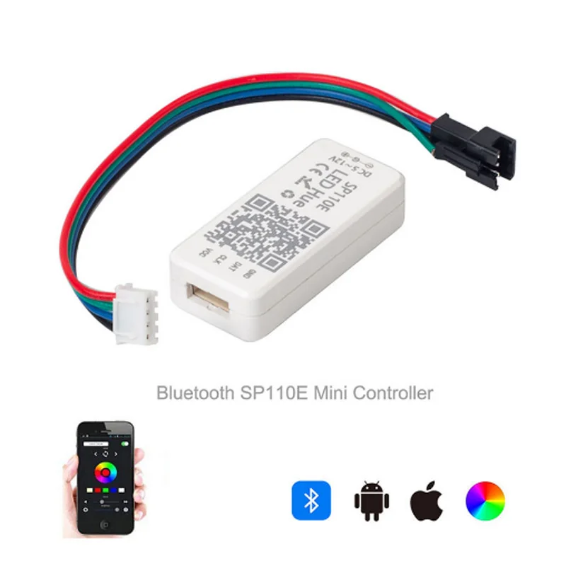 Метод управления: APP-BluetoothВходное напряжение: 5-24 В постоянного токаПиксель: 1024Разъем: 3pinРасстояние управления: 20 мВес изделия: 20 г;Размер изделия: 85 мм * 45 мм * 22 мм;Поддержка IC: WS2811 WS2812B WS2813 WS2801 SK6812 SM16703 TM1804 UCS1903 LPD8806 APA102 APA105 DMX512 TM1914 TM1913 P9813 INK1003 P943S P9411 p94189413 tx18818208 SK6812-RGBW