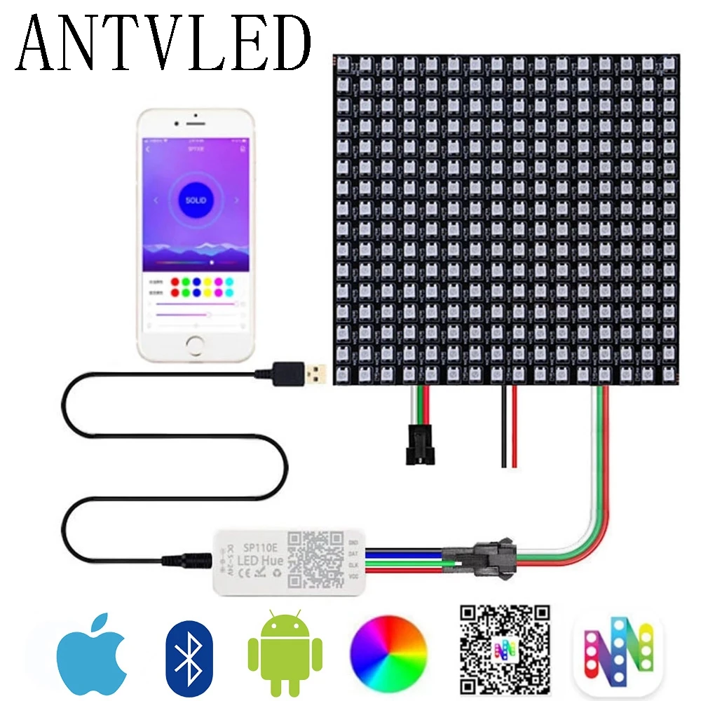 Светодиодный панельный экран WS2812, 5 В, WS2812B, 8*8, 16*16, 8*32 пикселей, модульный светильник с Bluetooth-контроллером SP110E, с индивидуальной адресацией