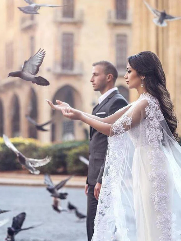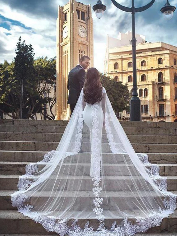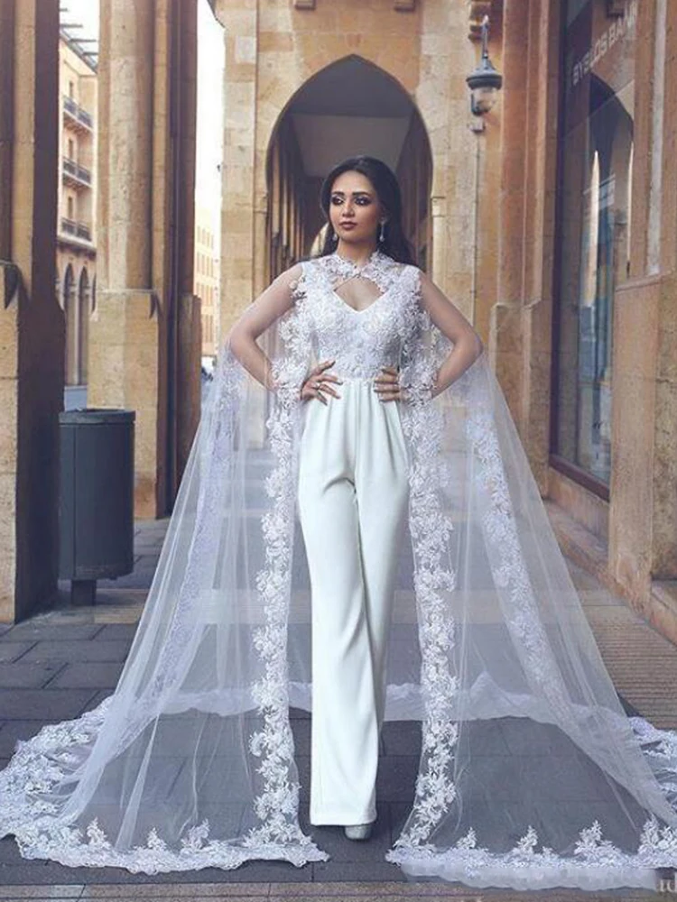 Свадебные платья, комбинезон с накидкой, кружевные аппликации на то...