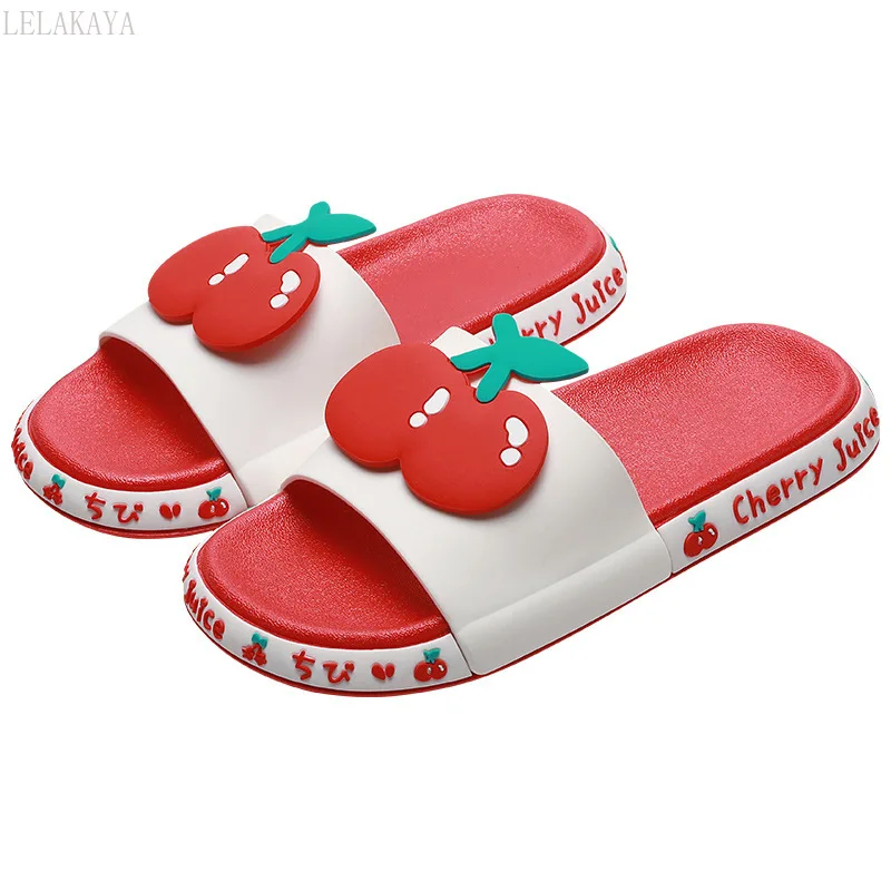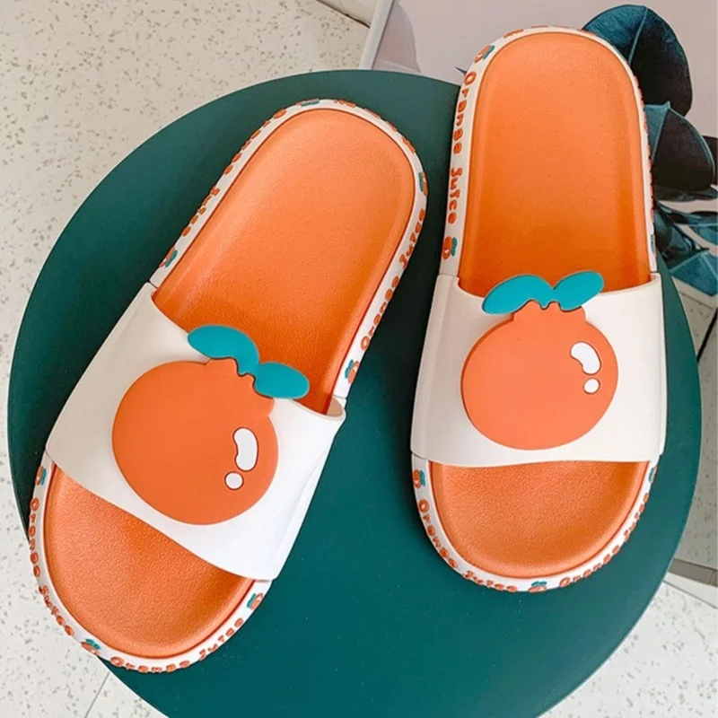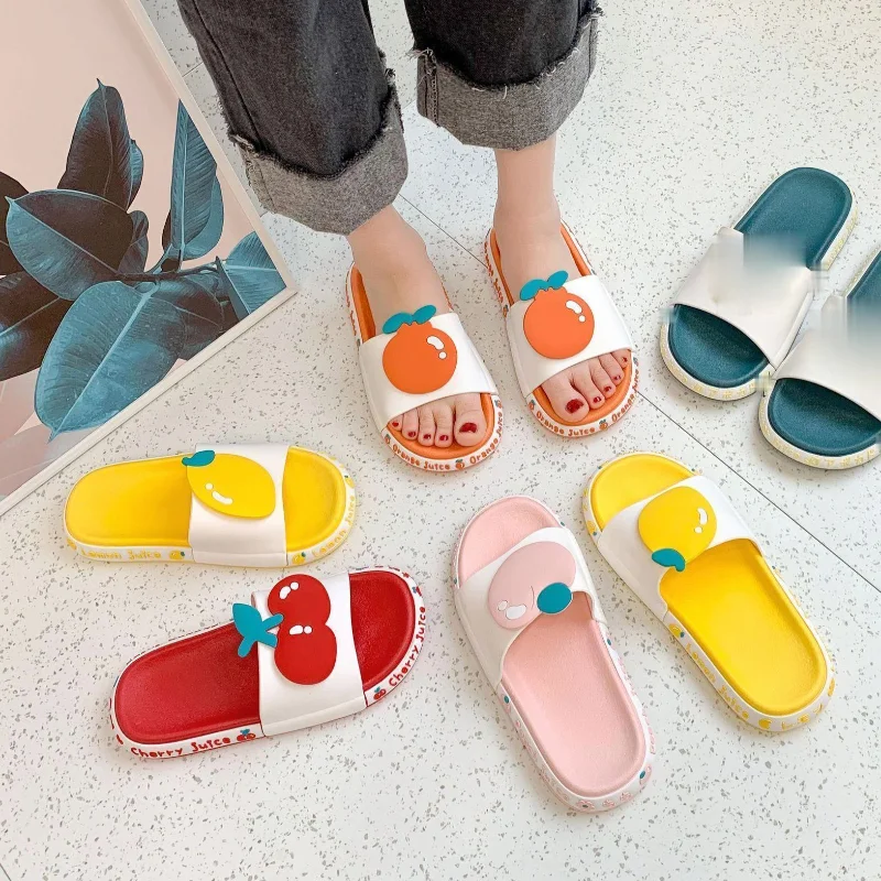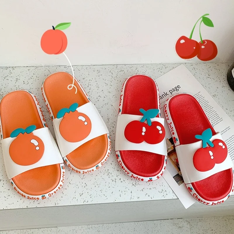 Сандалии женские с мягкой подошвой, милые тапочки с изображением фруктов, апельсина, вишни, персика, лимона, Нескользящие пляжные повседневные домашние тапочки для пар, на лето