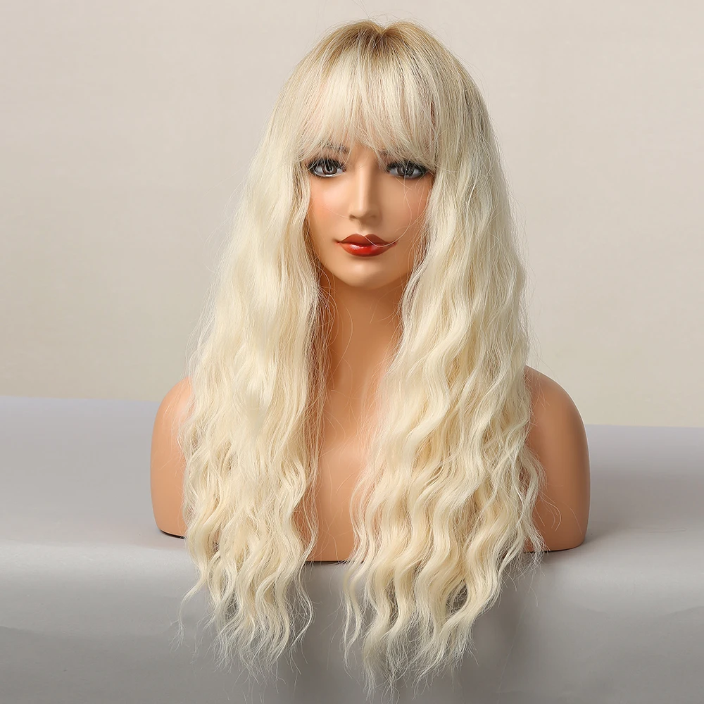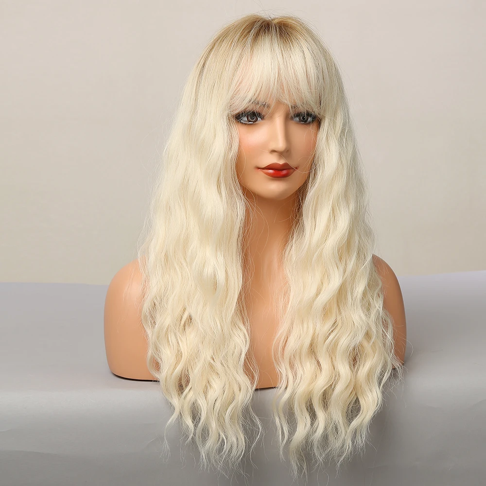 Длинные волнистые синтетические парики с челкой, светло-золотистые ...