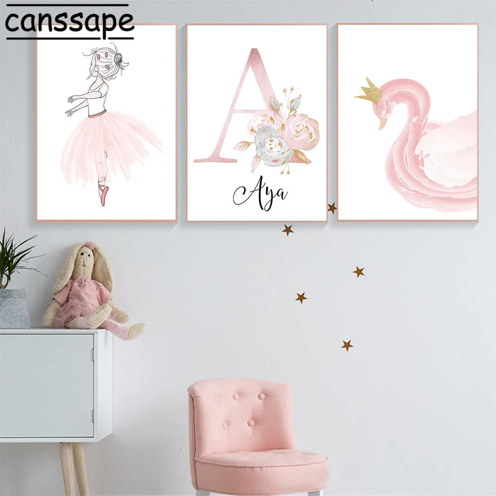 Настенные художественные плакаты на холсте для детской комнаты, постер с именем на заказ, лебедь, кролик, картина, балетка, девочка, принт, цветок, цитаты, картины, декор для детской комнаты