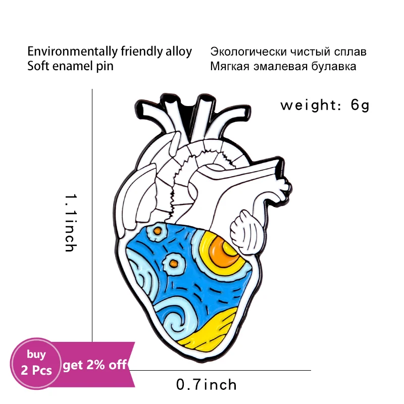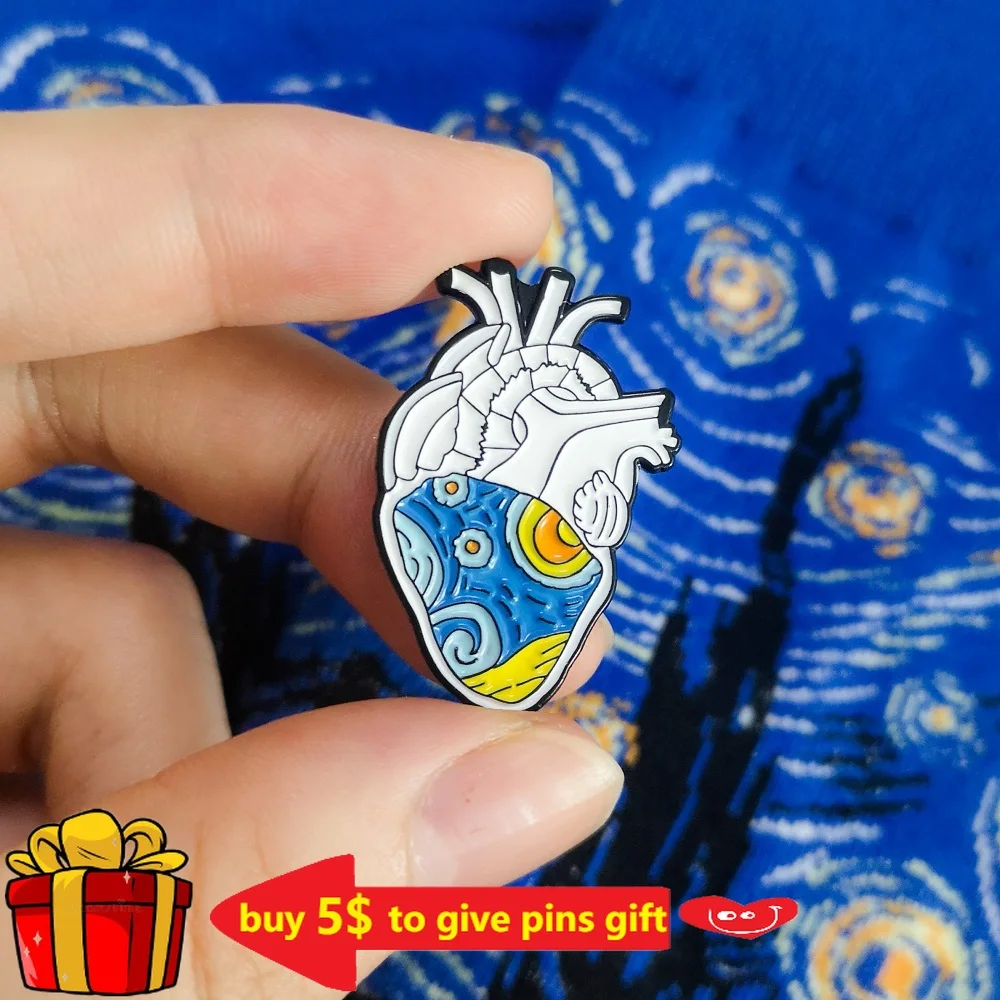 Эмалированная булавка с изображением звездного сердца в стиле Ван Гога
