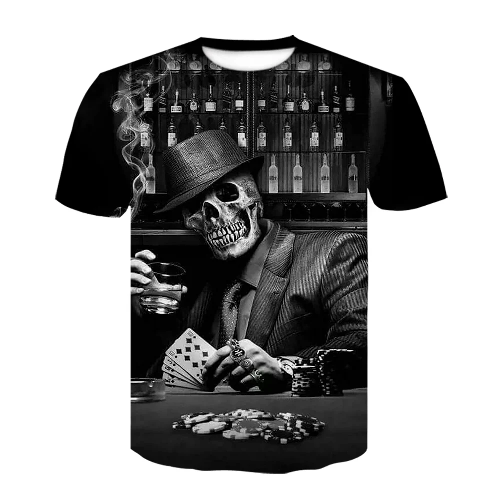 Футболка мужская с 3d черепом, повседневная тенниска с круглым вырезом, топ с короткими рукавами, стильная уличная одежда в стиле хип-хоп, лето