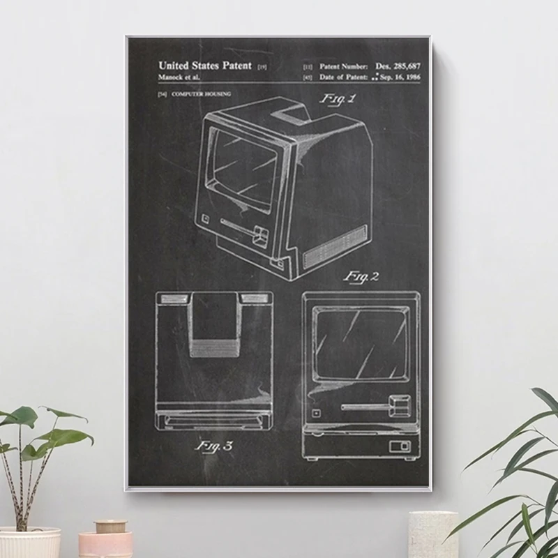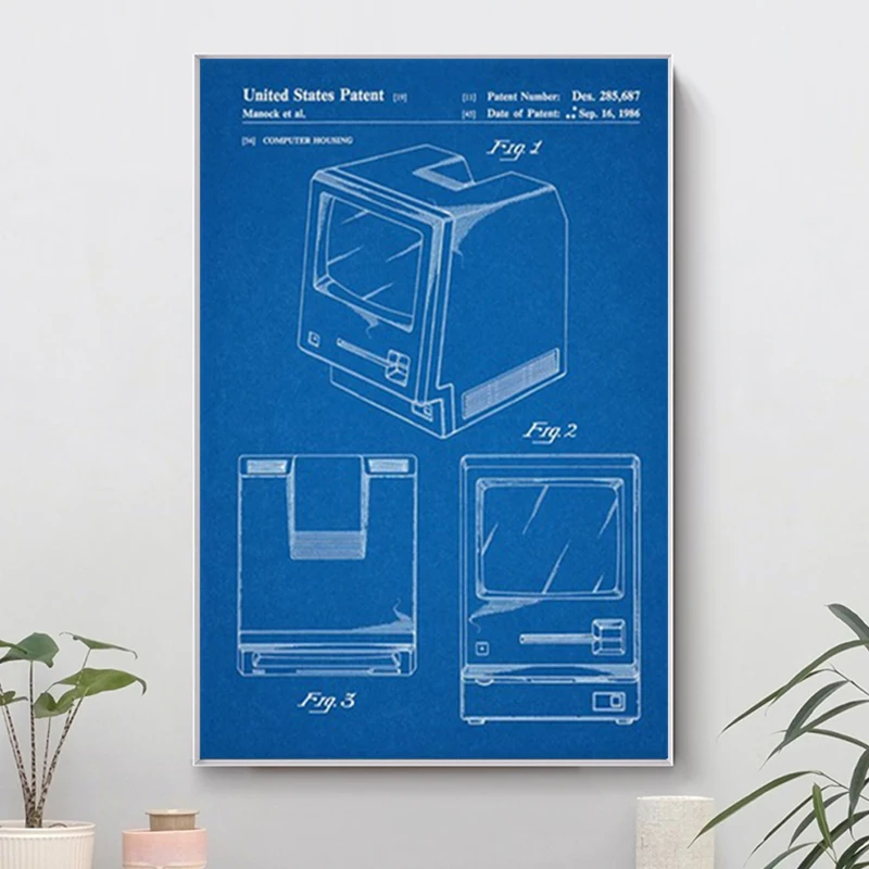 Компьютерные постеры Apple, патент на ПК Macintosh, технологическое настенное искусство, гик декор, винтажная печать, схема, идея подарка, настенные украшения
