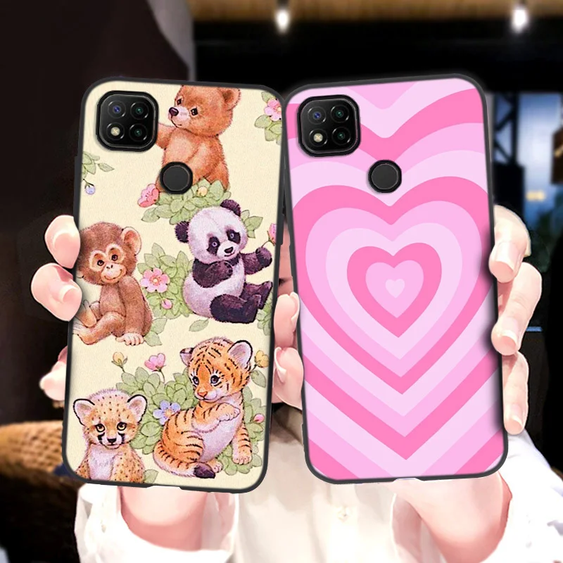 Силиконовый чехол с сердечками для Xiaomi Redmi 9, мягкий чехол для телефона Xiaomi Redmi 9C NFC 10 9A 9T, чехол Redmi9 C NFC, чехол панда