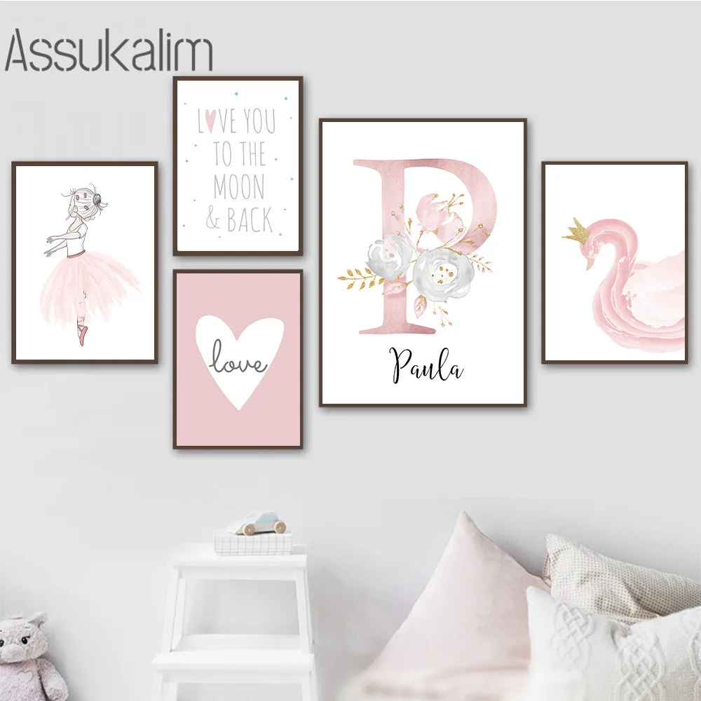 Детская настенная живопись пользовательское имя плакат балетные костюмы для девочек с принтом в виде кролика Плакаты цветочные принты картина "Лебедь" Детские Спальня украшения